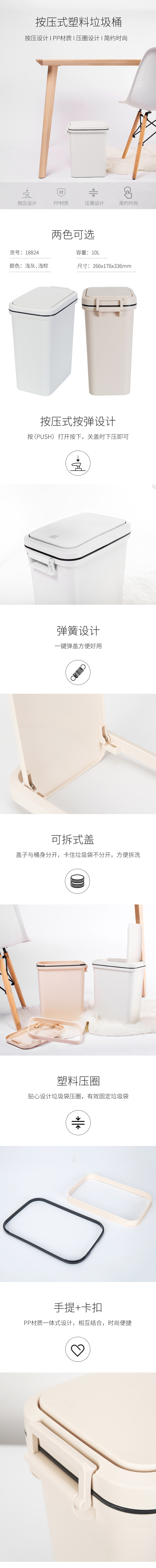 得力18824 塑料按壓式垃圾桶廢紙簍PP材質辦公家用環保