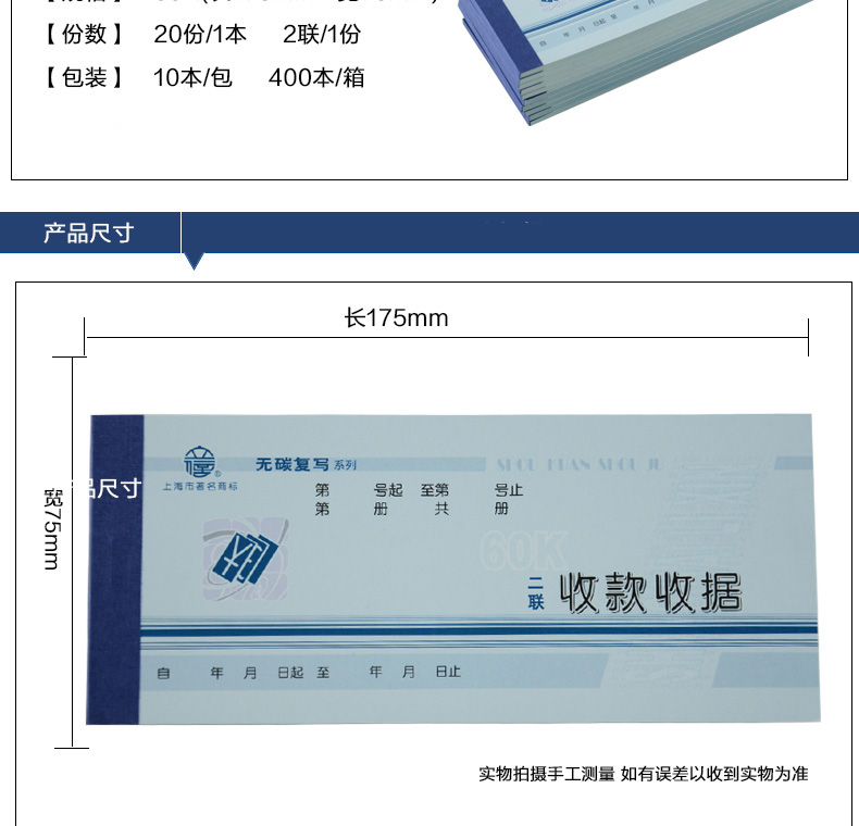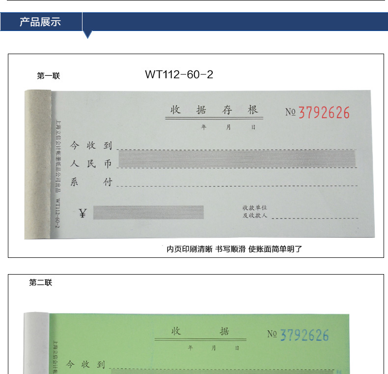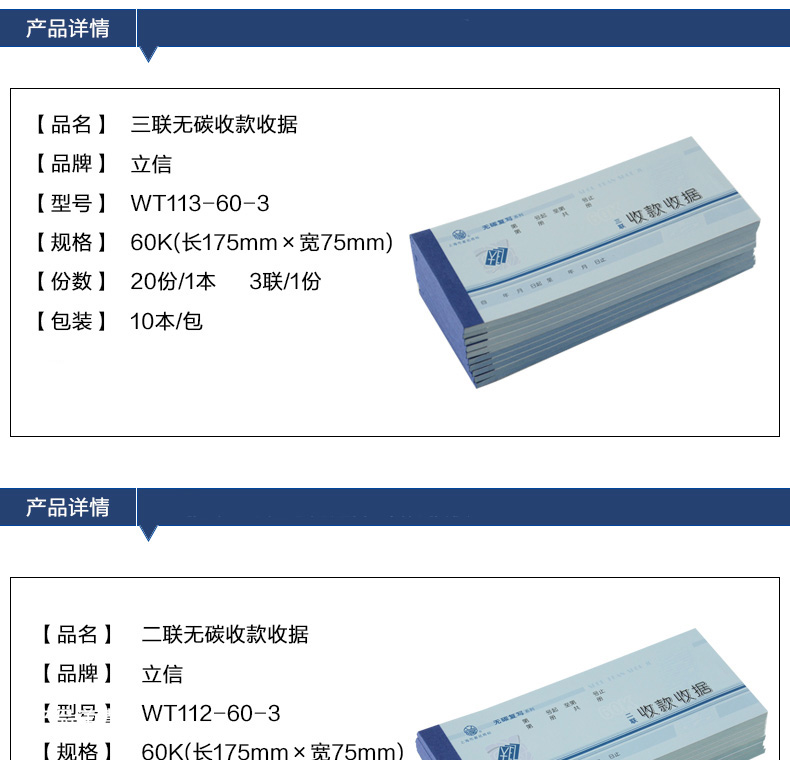 立信三聯收款收據60開二聯無碳復寫收款收據2聯 3聯單據財務用品