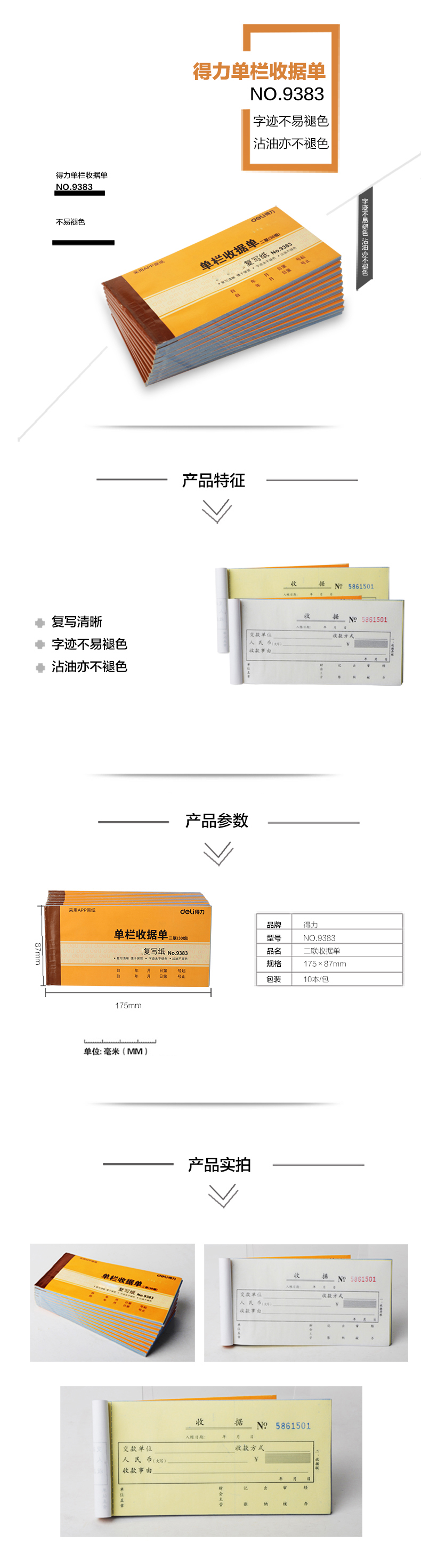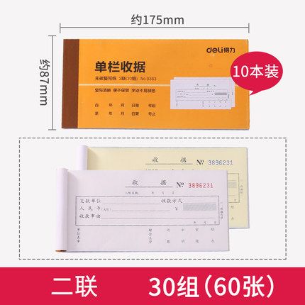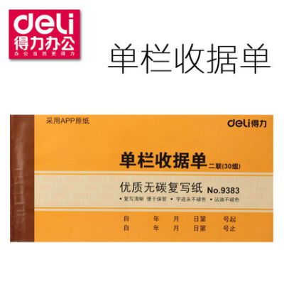 得力 單欄收據(jù)單二聯(lián)單欄收據(jù)憑證單 無(wú)碳復(fù)寫票據(jù)9383 9384 三聯(lián)