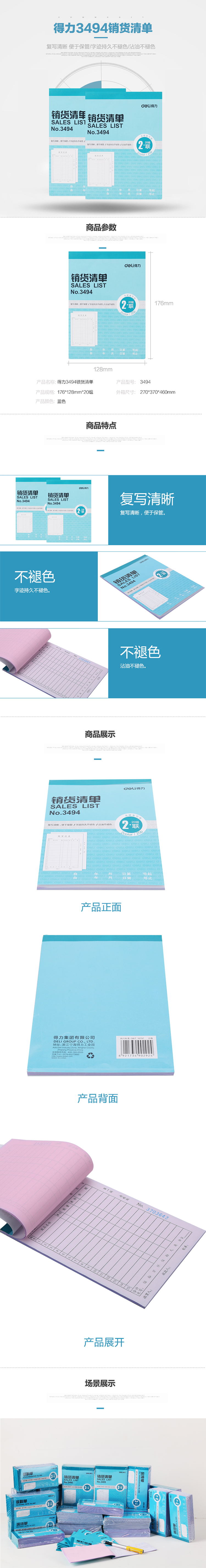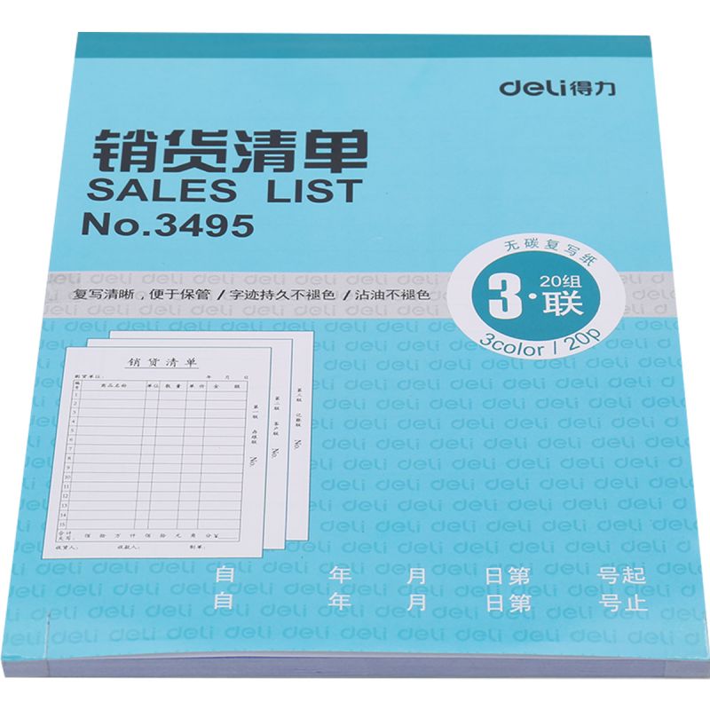 得力送貨清單本單據 二聯三聯銷貨清單無碳復寫倉庫 20組/本