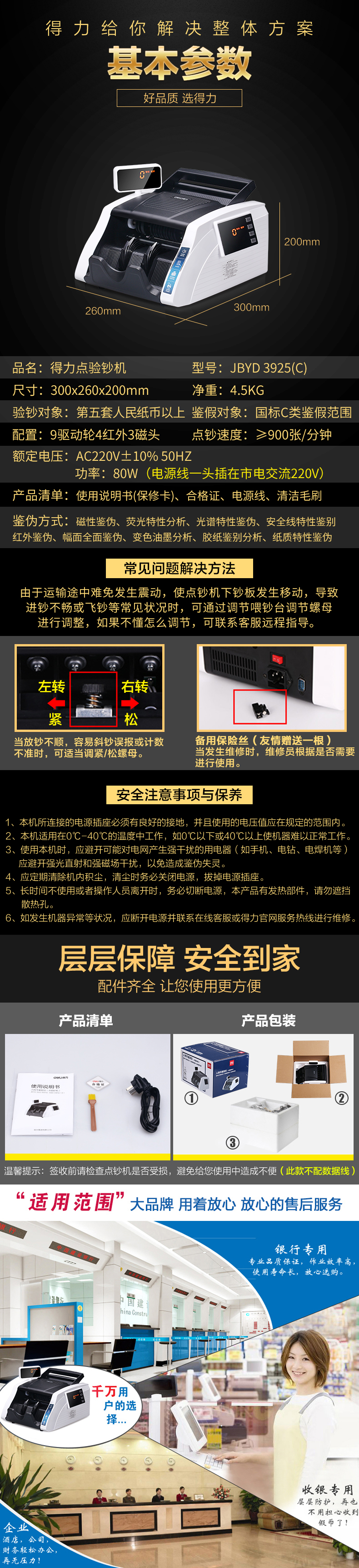 得力3925驗鈔機銀行專用辦公家用智能點鈔機小型便攜式新版人民幣