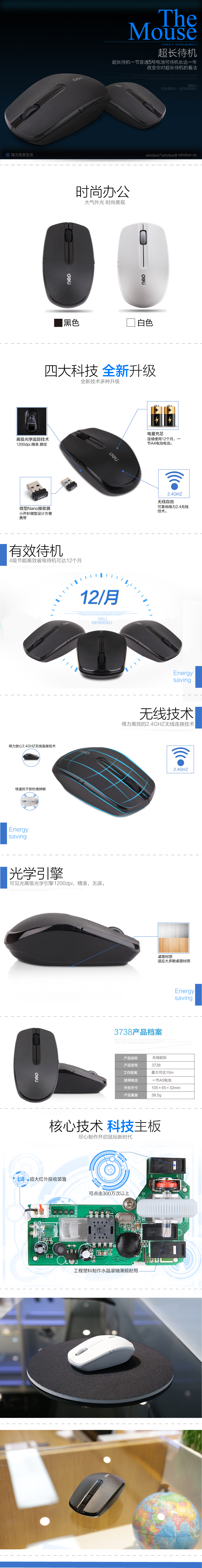 得力3738無線鼠標黑色白色 筆記本臺式電腦鼠標 家用辦公移動便攜