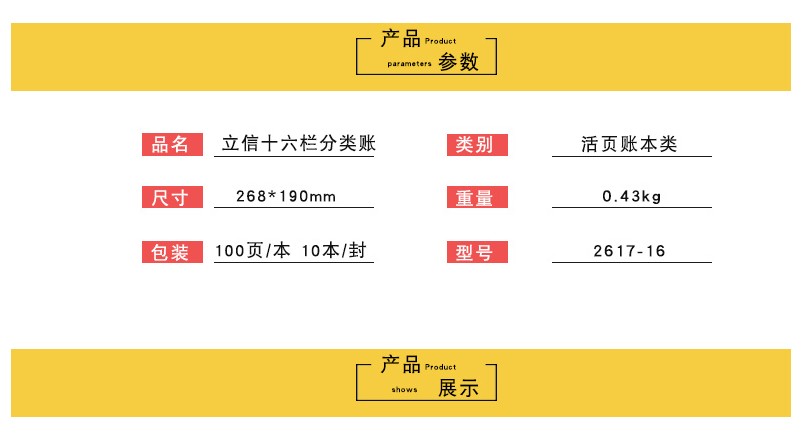 立信2617-16十六欄明細分類賬 265*189mm 16K活頁賬冊 100張/本