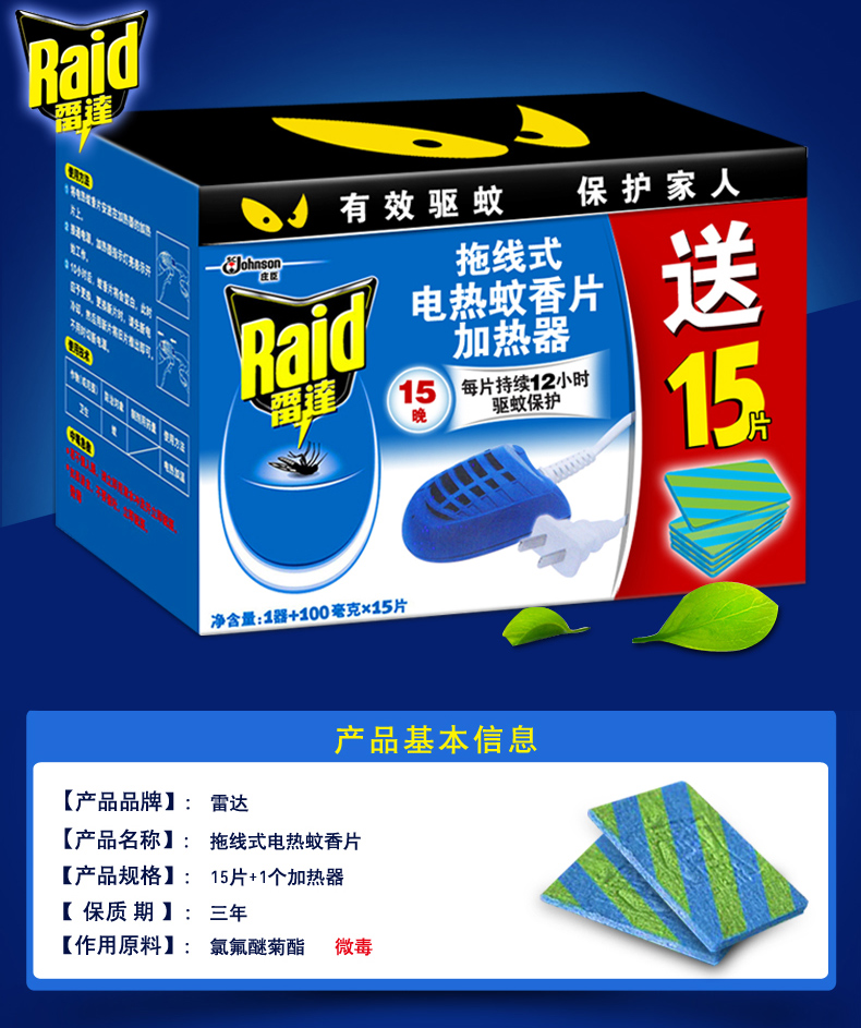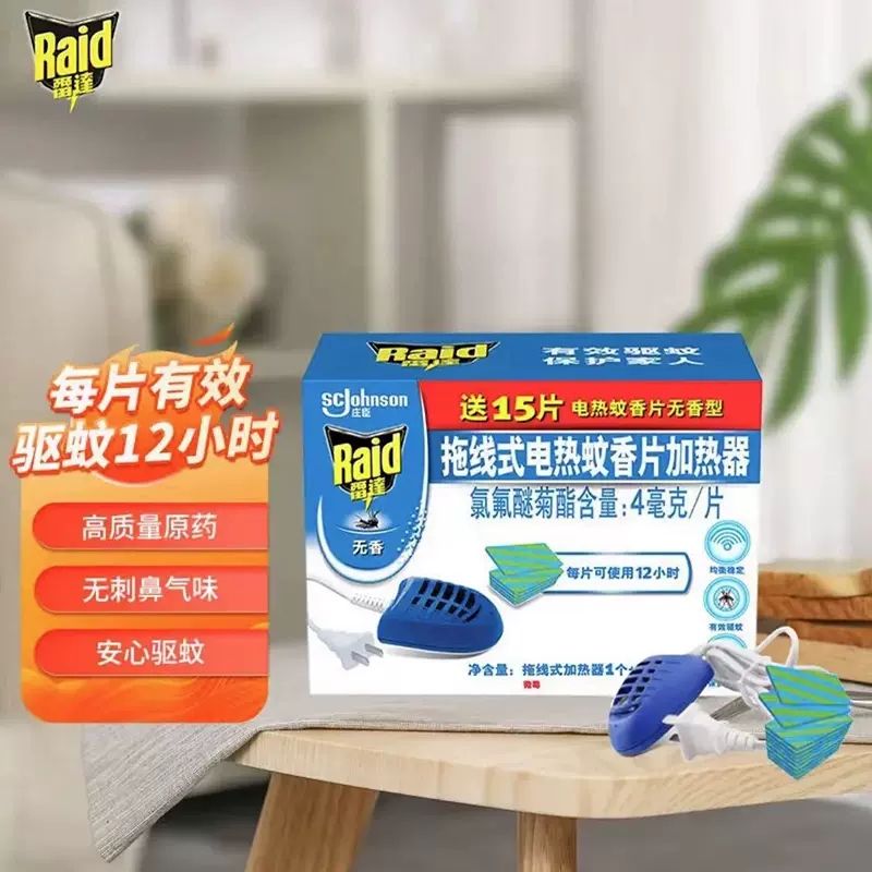 雷達(dá)電熱蚊香片拖線拖線式加熱器+15片套無(wú)香套裝驅(qū)蚊器滅蚊組合 電蚊香