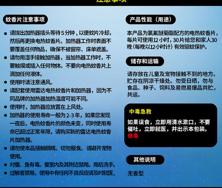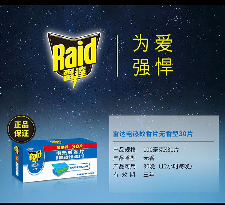 雷達(dá) 電熱蚊香片 30片無香型 安全有效 驅(qū)蚊防蚊 電蚊香