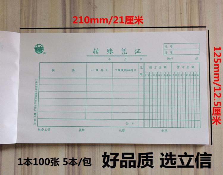 立信30K轉賬憑證5本裝財務憑證用品100張/本手工做賬憑證紙