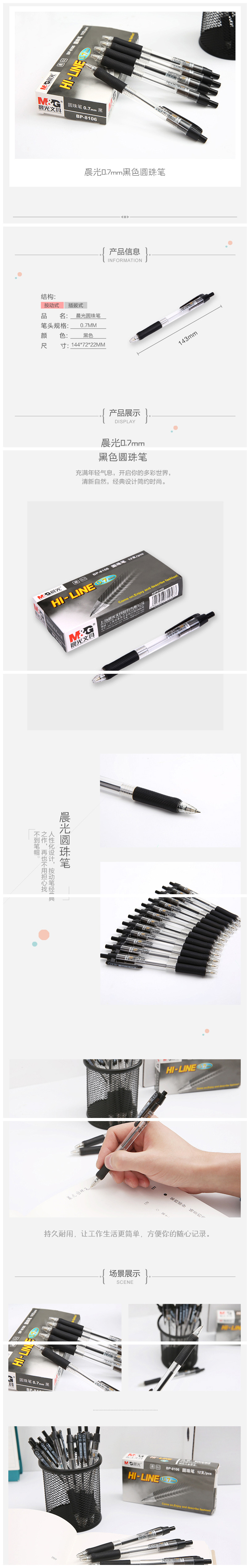 晨光(M&G)辦公圓珠筆按動子彈頭中油筆原子筆0.7mm12支黑色 BP8106