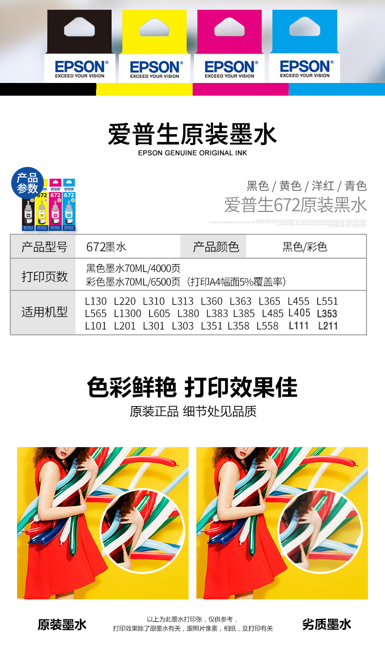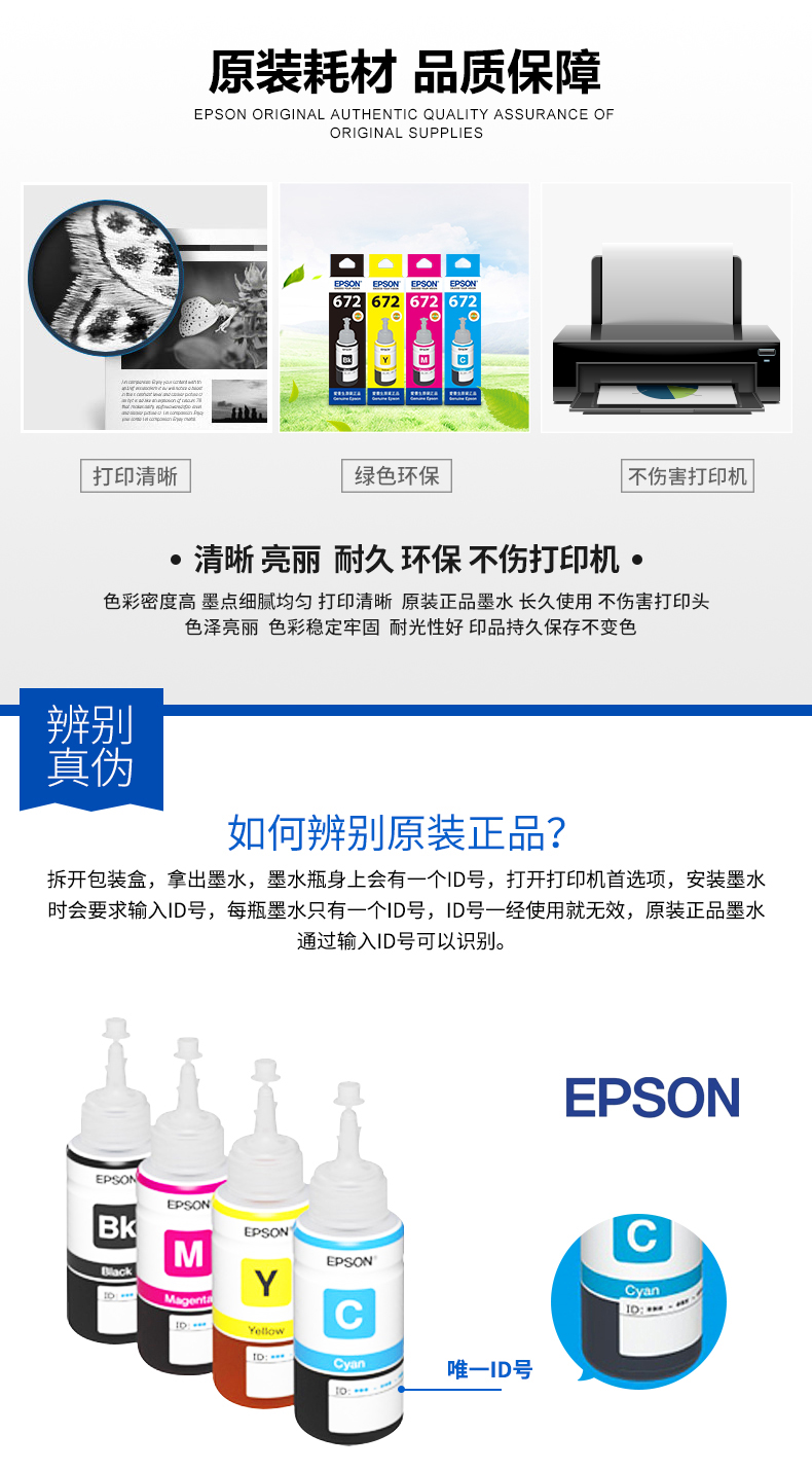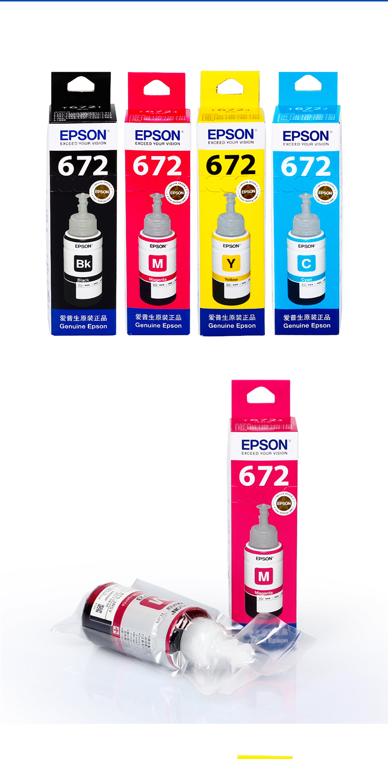 愛普生(EPSON) T6721原裝墨水適用L360/L310/L1300/L380-5 墨倉式打印機墨水T672黑色