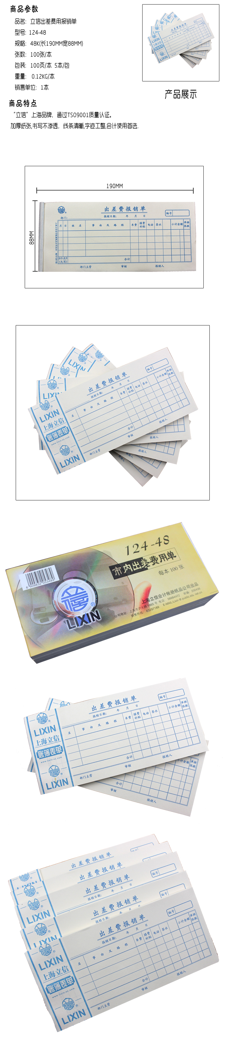 立信124-48 市內出差費用單48K憑證 出差費報銷單