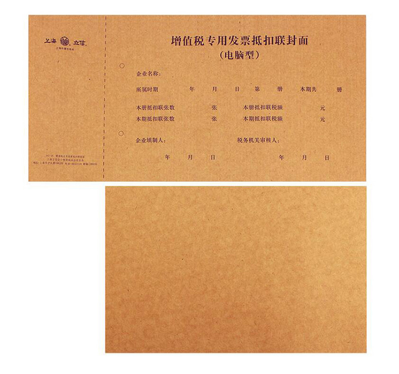 立信192-20增值稅發票抵扣聯封面 牛皮紙20K封面 20開存根聯封面