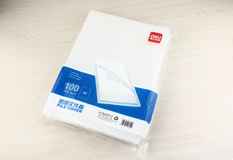 得力100個(gè)裝 透明A4文件套 L型文件袋單片夾兩頁夾透明辦公文件袋 5700