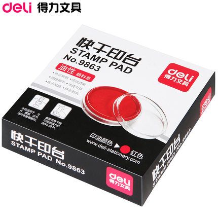 得力快干印臺9863 紅色藍色圓形橡皮章印泥 財務用品