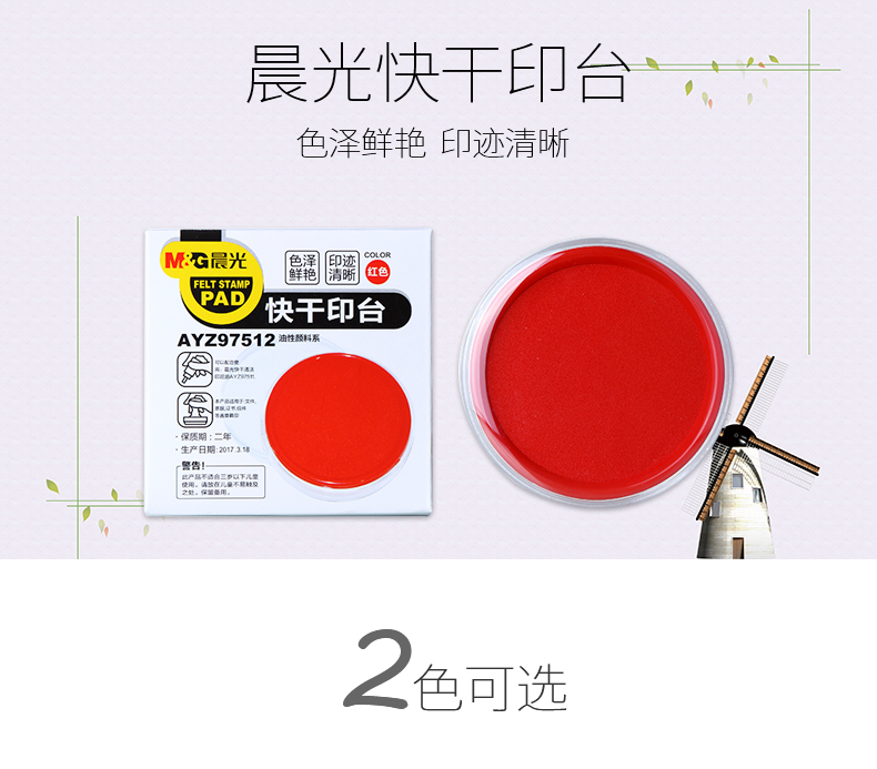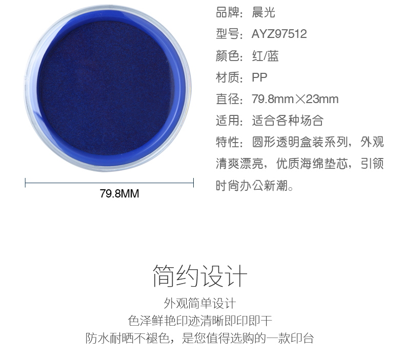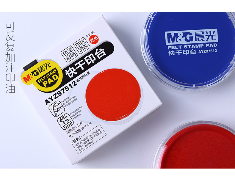 晨光快干印臺泥油盒藍(lán)紅色速干財務(wù)銀行 蓋章不暈染辦公用品