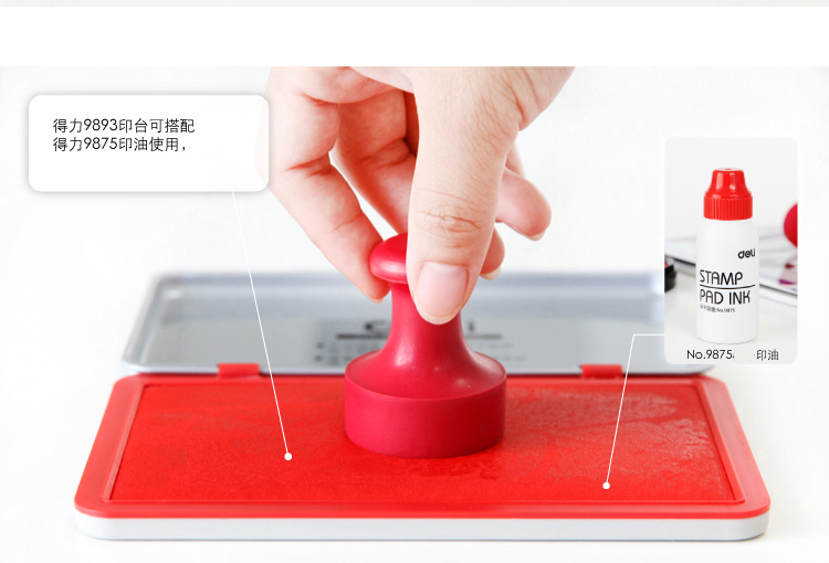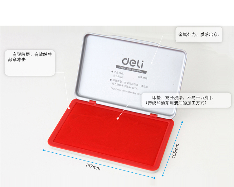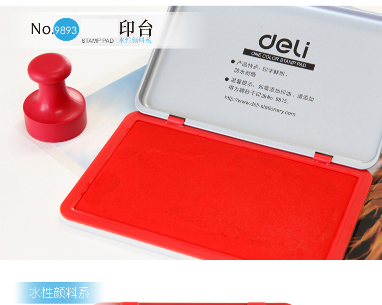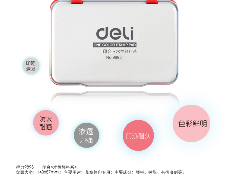 得力9893快干防水印臺 金屬外殼印臺 秒干速干印臺印泥不暈染