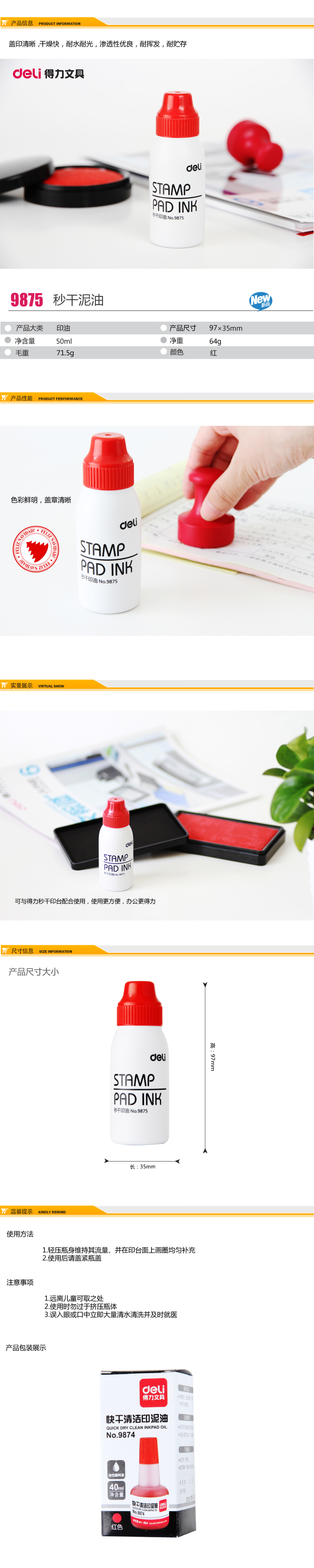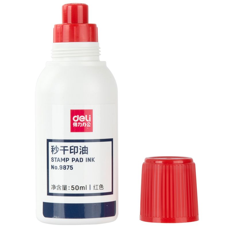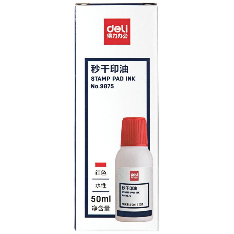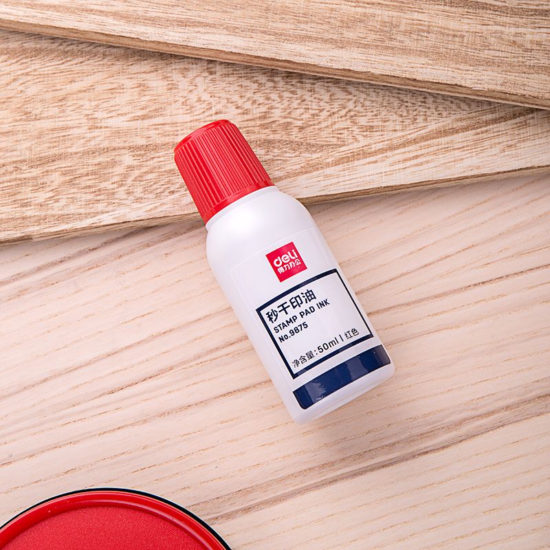 得力9875秒干印油速干水性印章水印泥水印尼油印泥油紅色財務專用