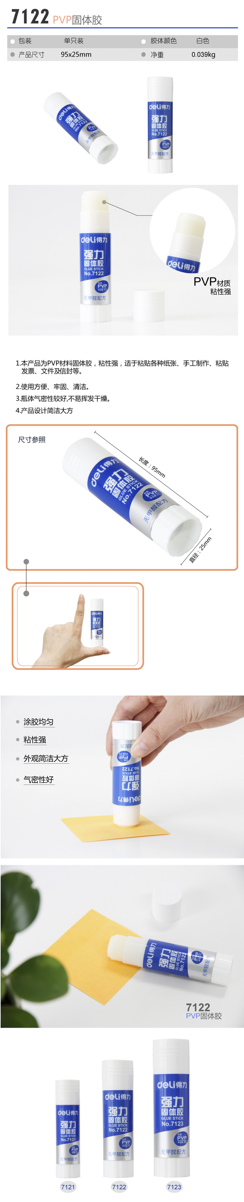 6支裝得力固體膠7122強(qiáng)力PVP無(wú)甲醛配方21克固體膠棒 膠水棒