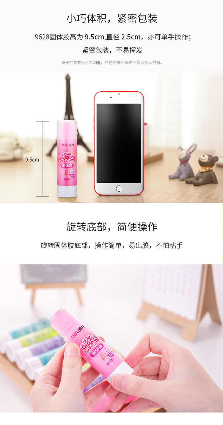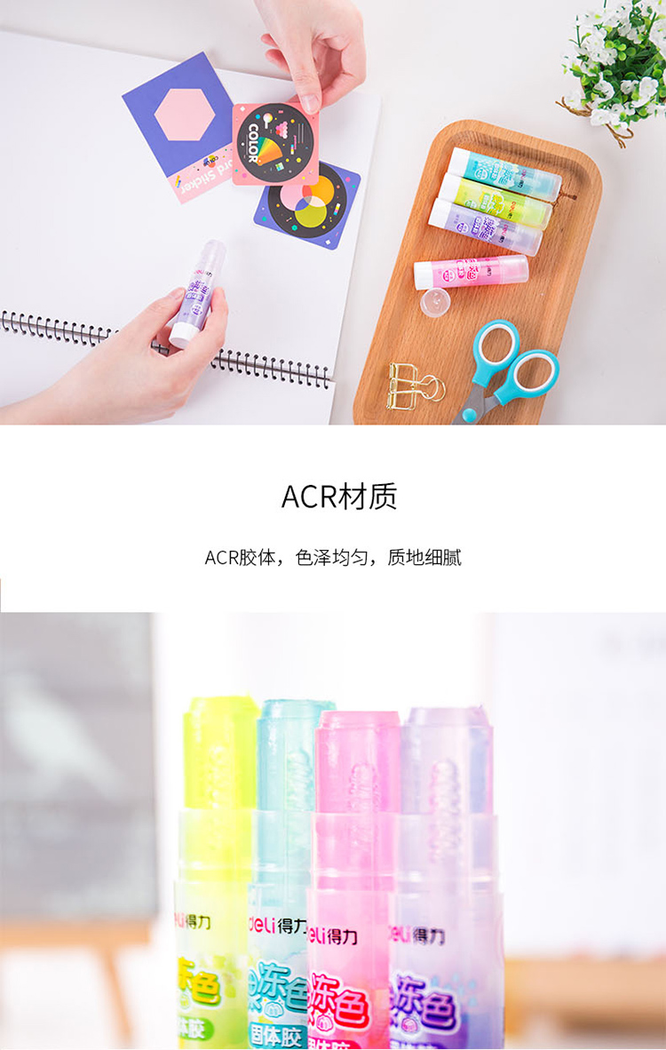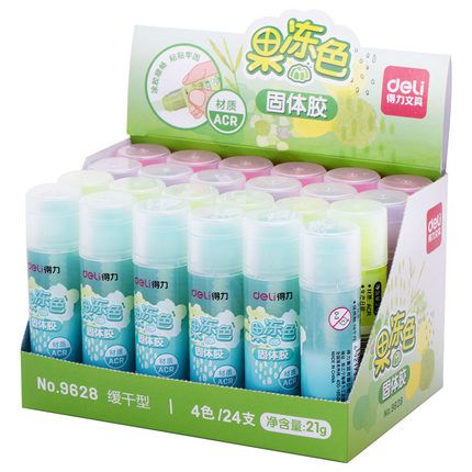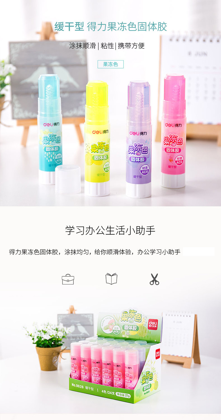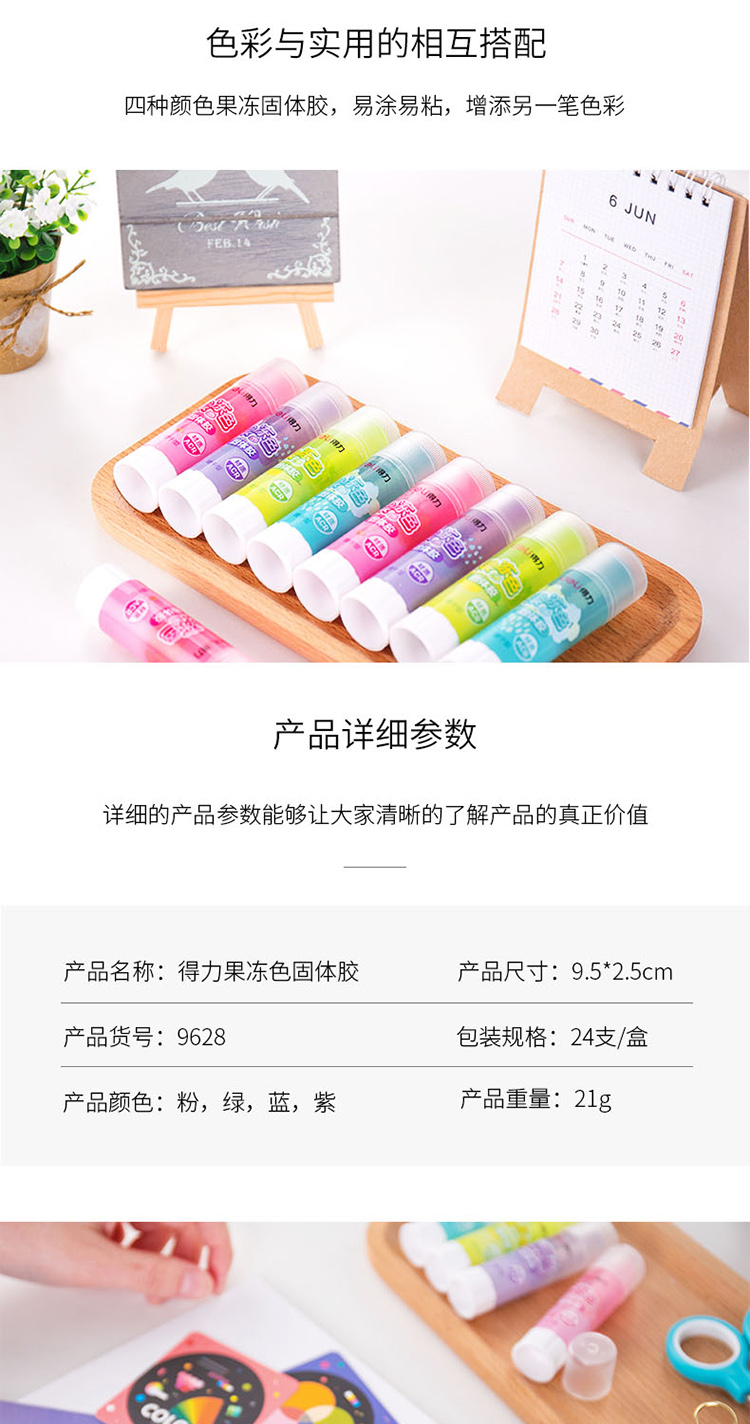 得力9628固體膠棒 單支裝 果凍色固體膠 ACR材質膠水學生辦公膠棒