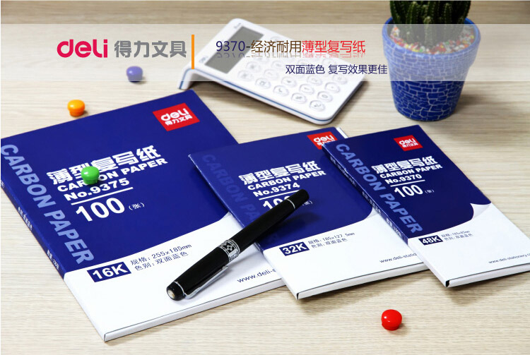 得力9372雙面藍色復(fù)寫紙38K印藍紙復(fù)印藍紙藍印紙財務(wù)會計辦公用