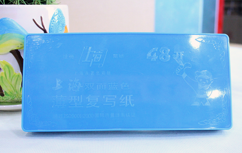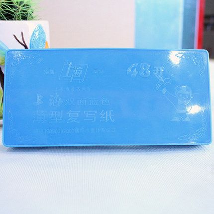 400張塑料盒裝 上海2834薄型藍印紙48開雙面藍色復寫紙8.5X18.5cm