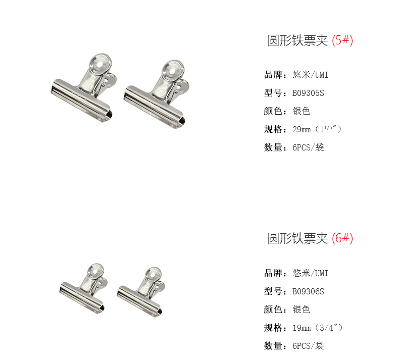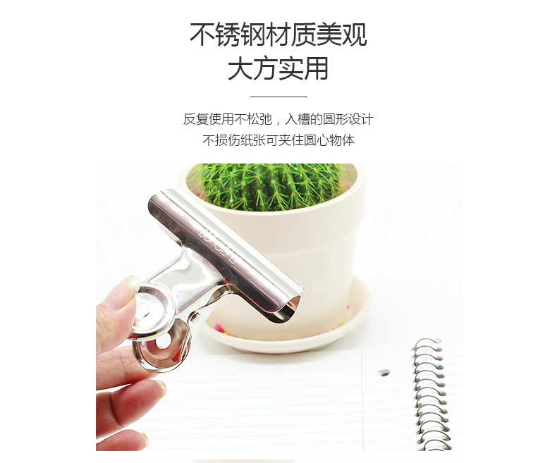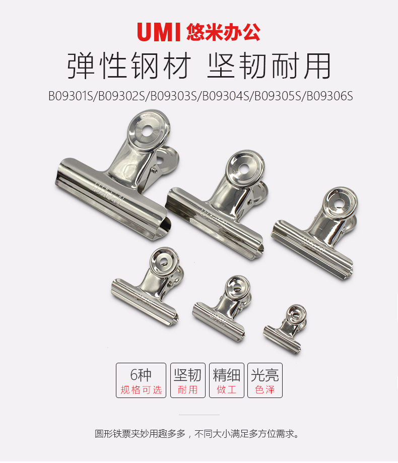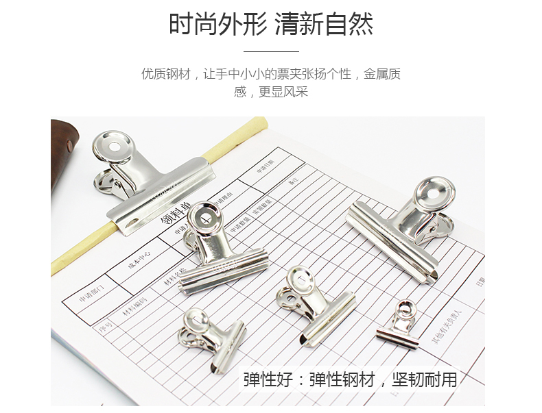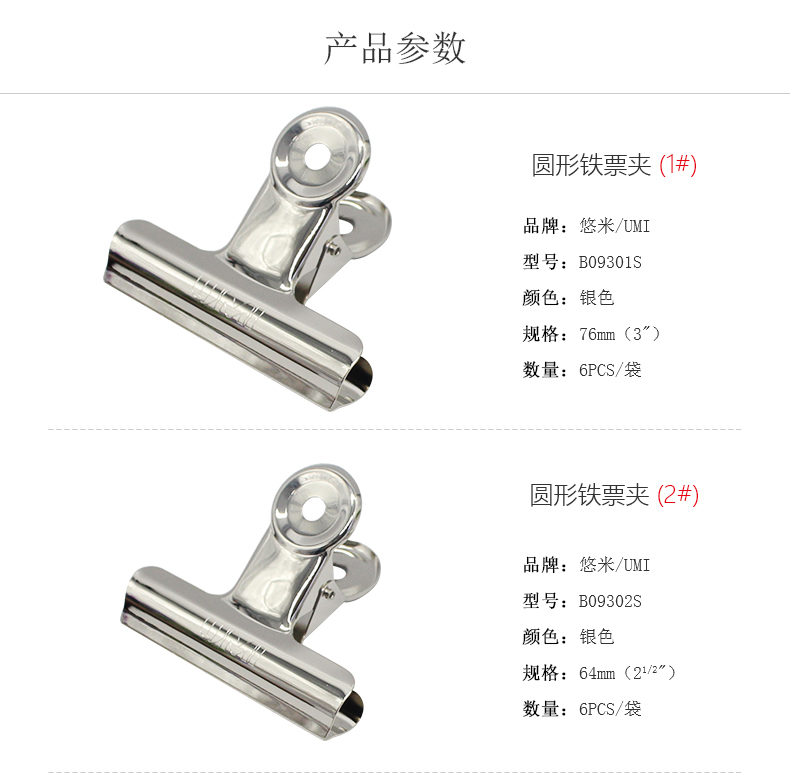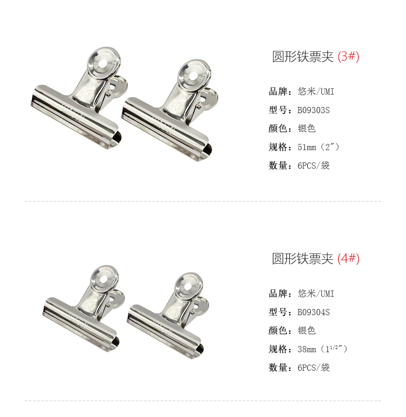 悠米不銹鋼鐵夾子大中小號夾子山圓形鐵票夾辦公用品票據(jù)夾