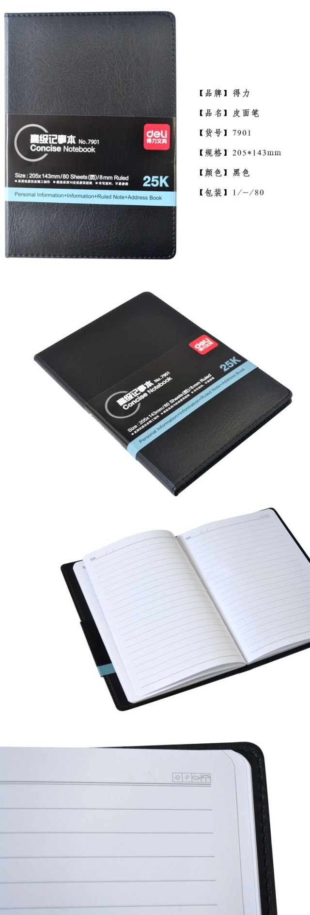 得力7900/7901/7902/7903皮面筆記本 80頁(yè)皮面日記記事本 皮面本 皮本