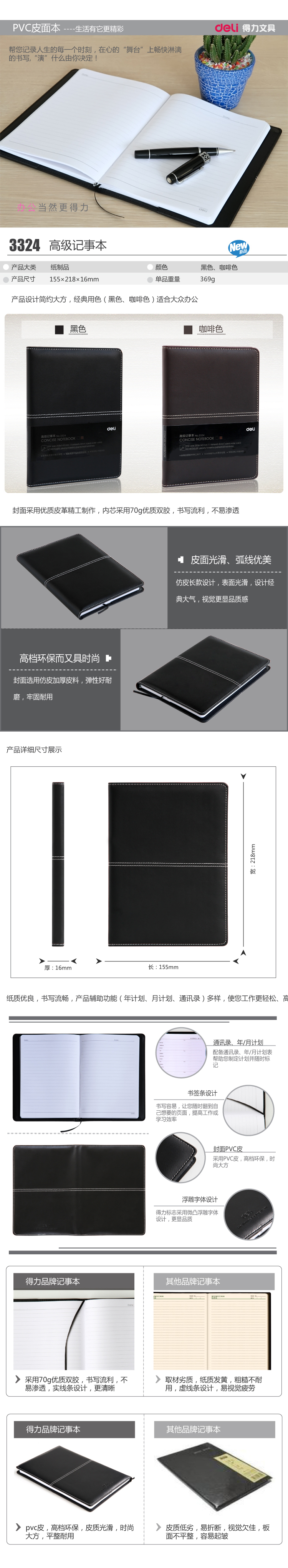 得力3323 3324高級皮面本18k 25K記事本114張筆記本 辦公商務(wù)優(yōu)質(zhì)皮革 皮本