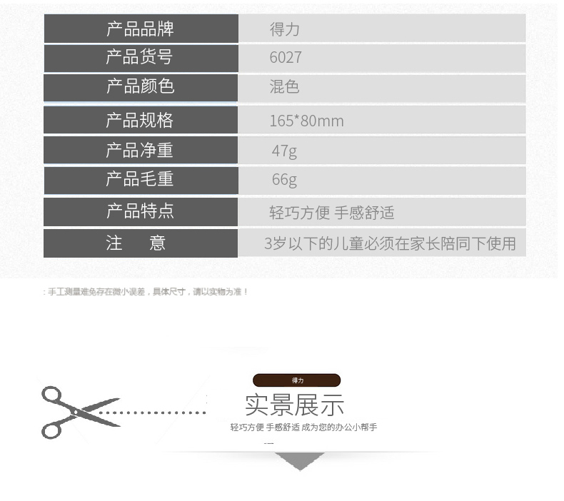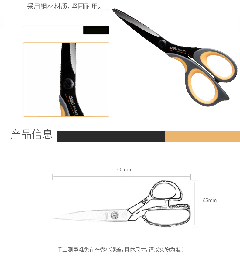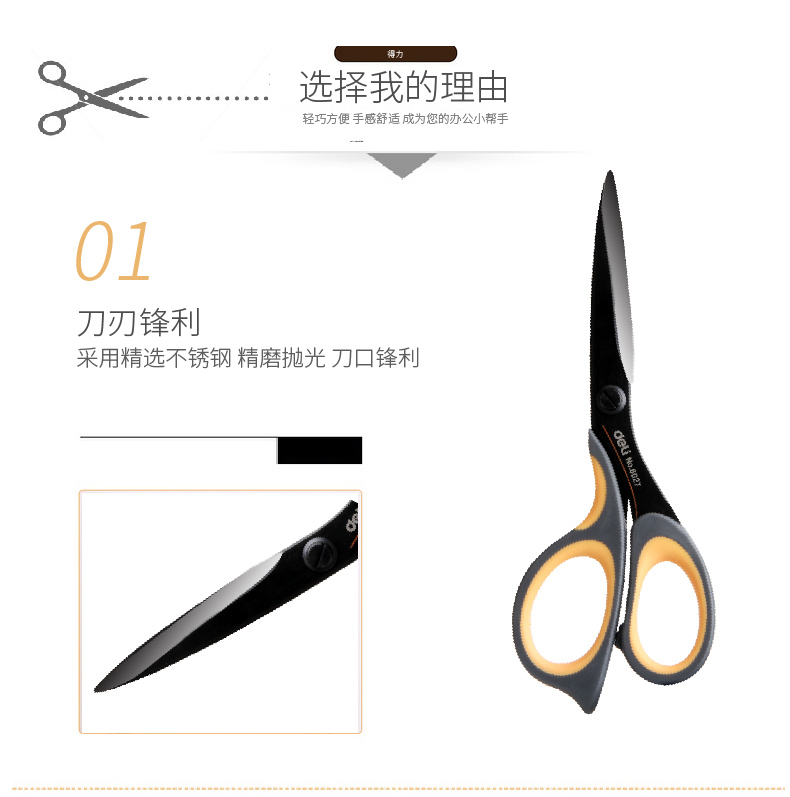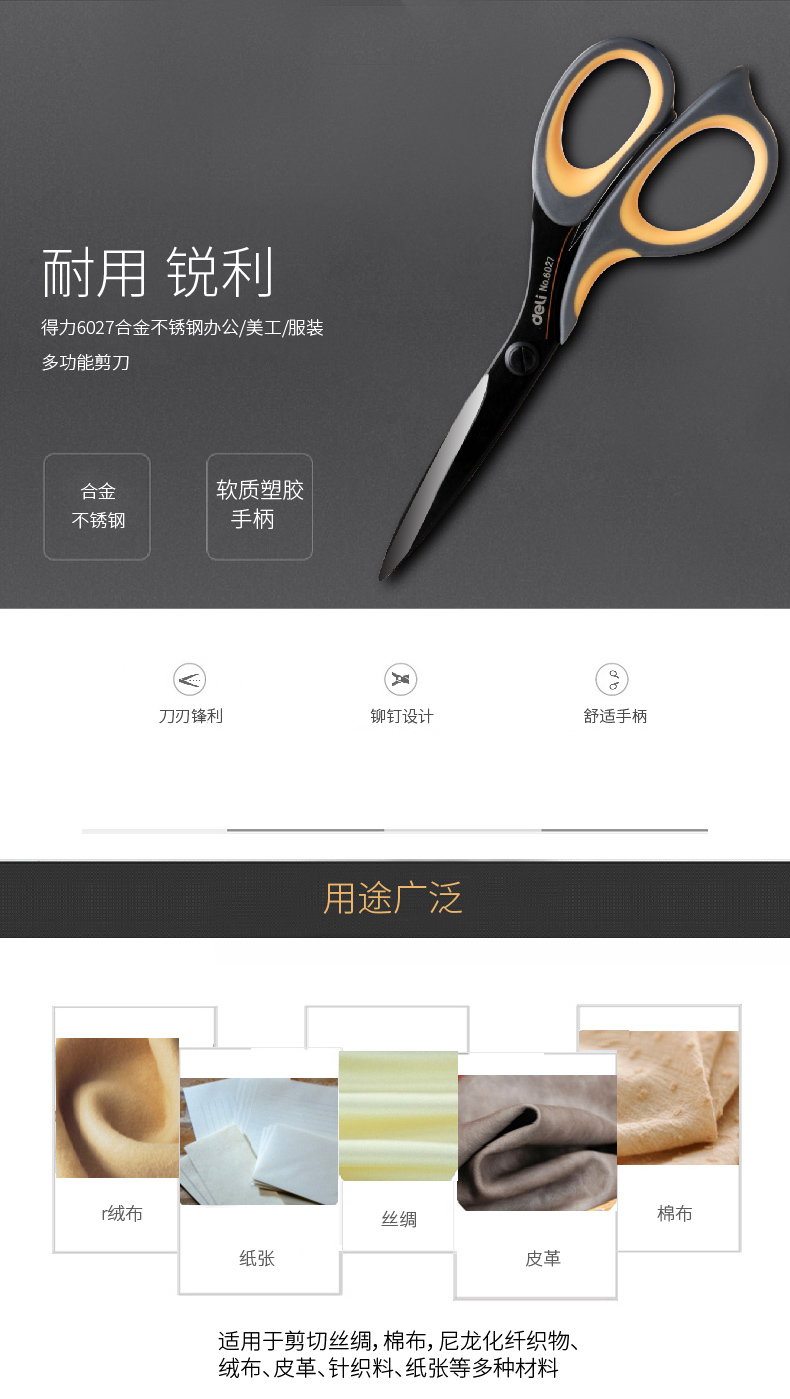 得力6027辦公剪刀/服裝剪刀 合金不銹鋼剪刀 耐用型銳利 剪刀剪子