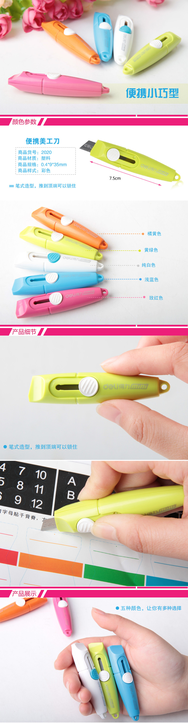 得力2020美工刀迷你安全便攜小號割刀辦公好幫手裁紙刀