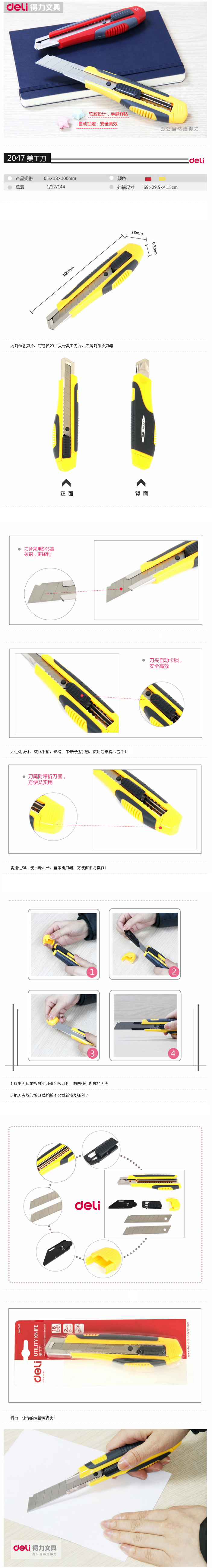 得力大號美工刀2047切紙刀架 手工裁切刀 壁紙刀 貼膜刀 雕刻刀