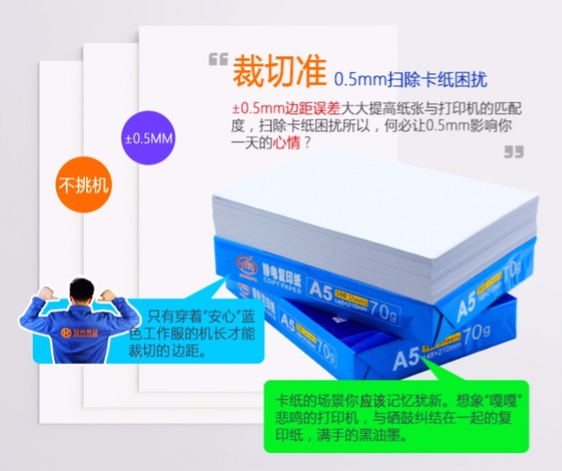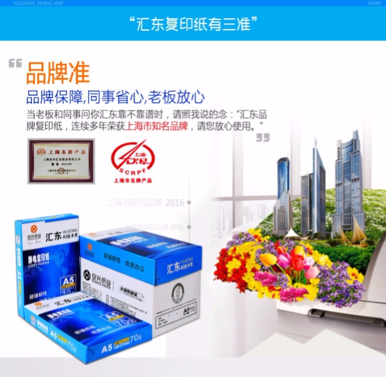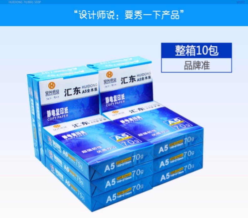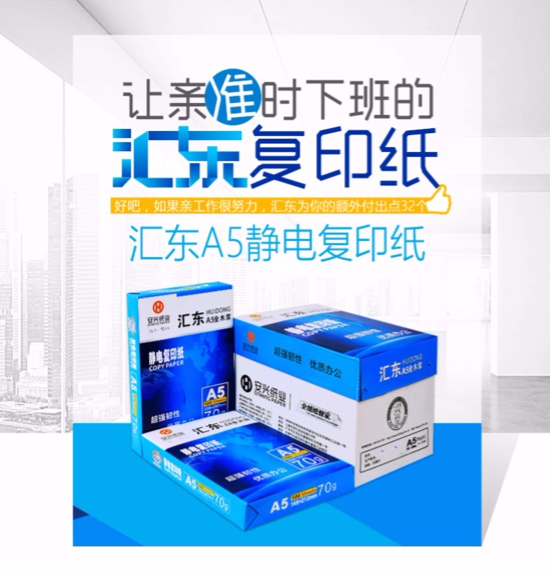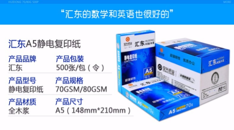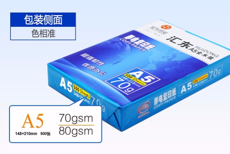 匯東復(fù)印紙A5打印復(fù)印紙整箱批發(fā)70g/80g辦公用白紙500張/包