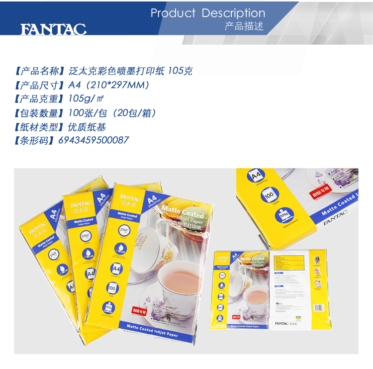 100張泛太克A4 105克彩噴紙彩色噴墨打印用紙作業紙彩噴紙