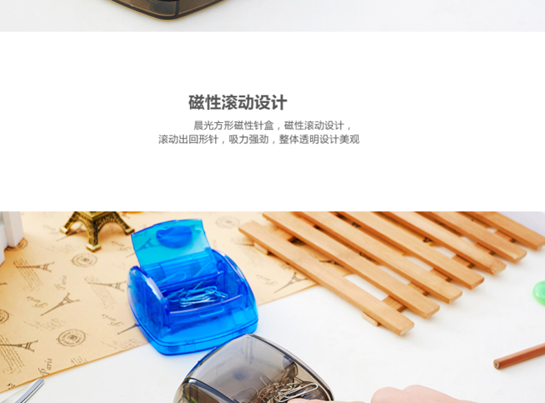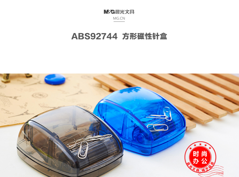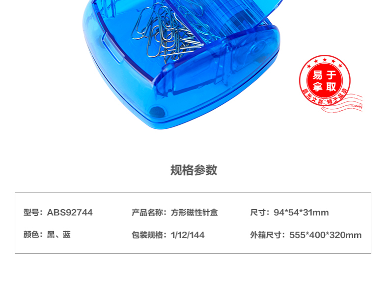 晨光ABS92744 磁性針回形針盒 方形透明盒 口帶磁性 易取用別針盒