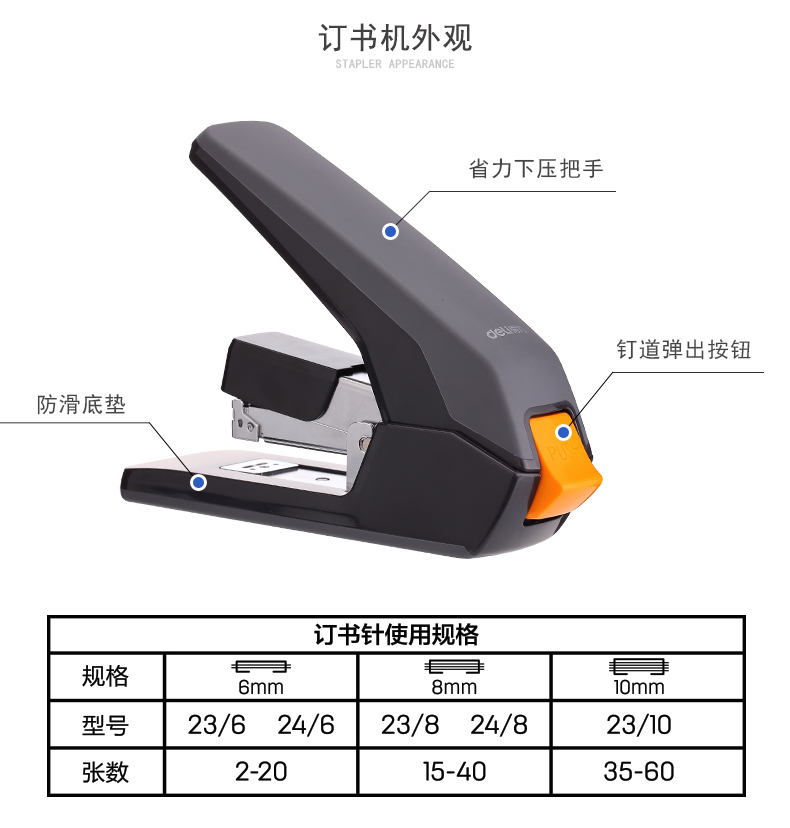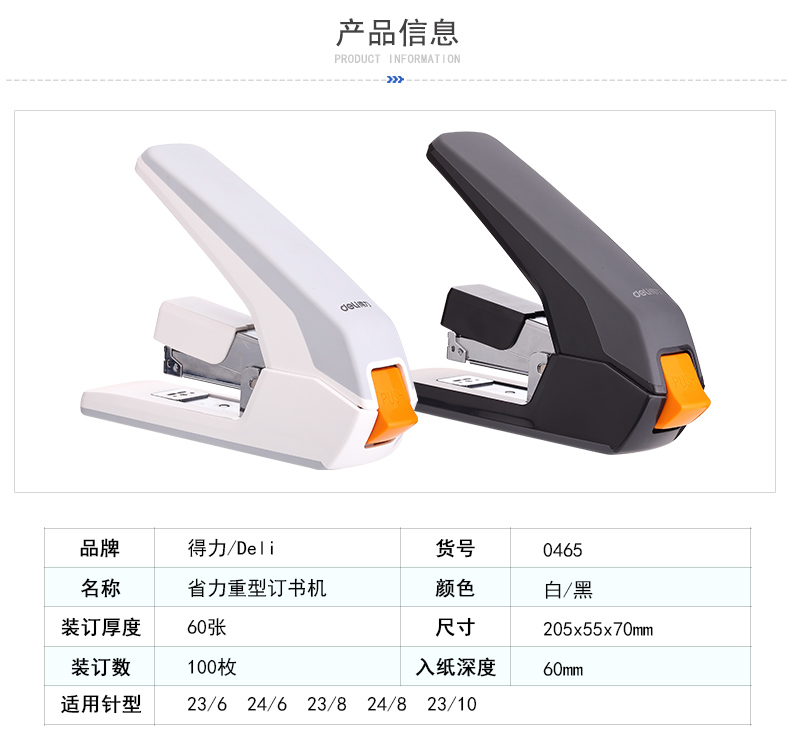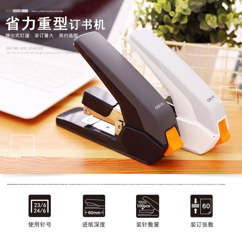 得力訂書機(jī)0465重型加厚辦公省力型大釘書機(jī)60頁壓書大訂書器