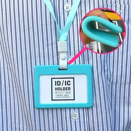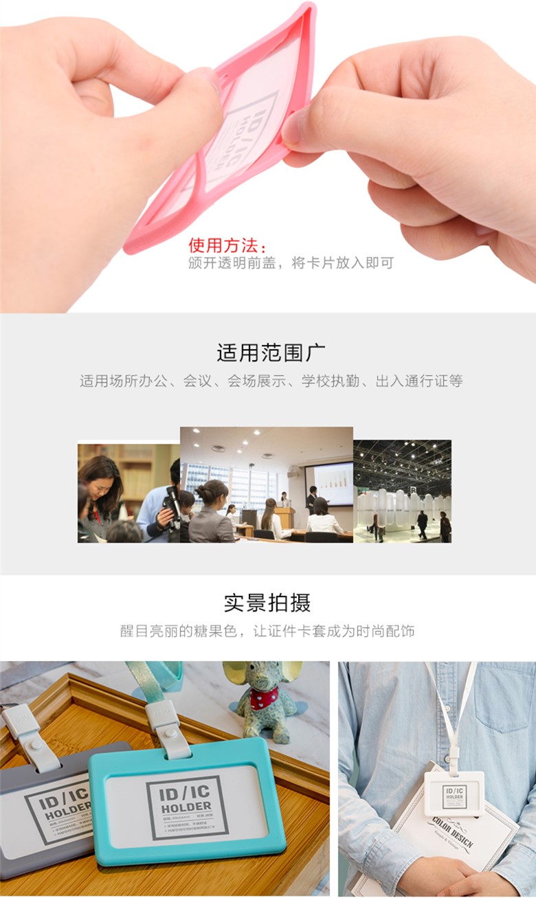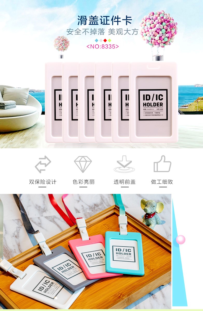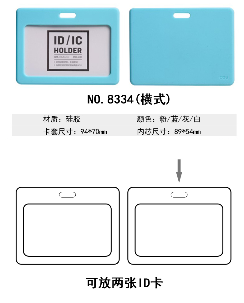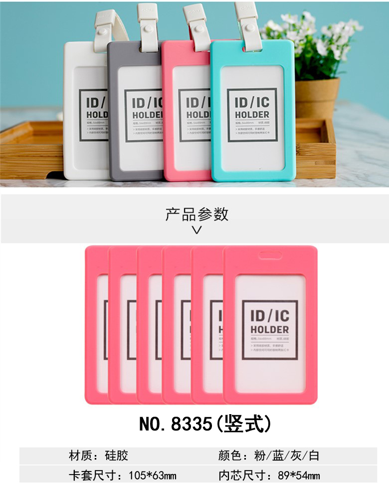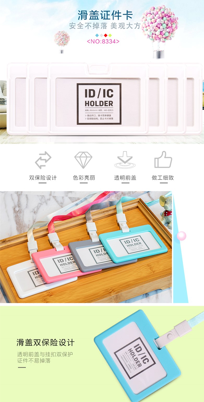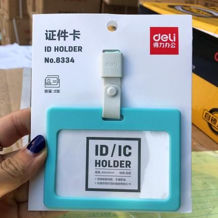 得力證件卡硅膠胸卡學生證件套卡套卡殼帶掛繩豎式橫式工作證8334 8335