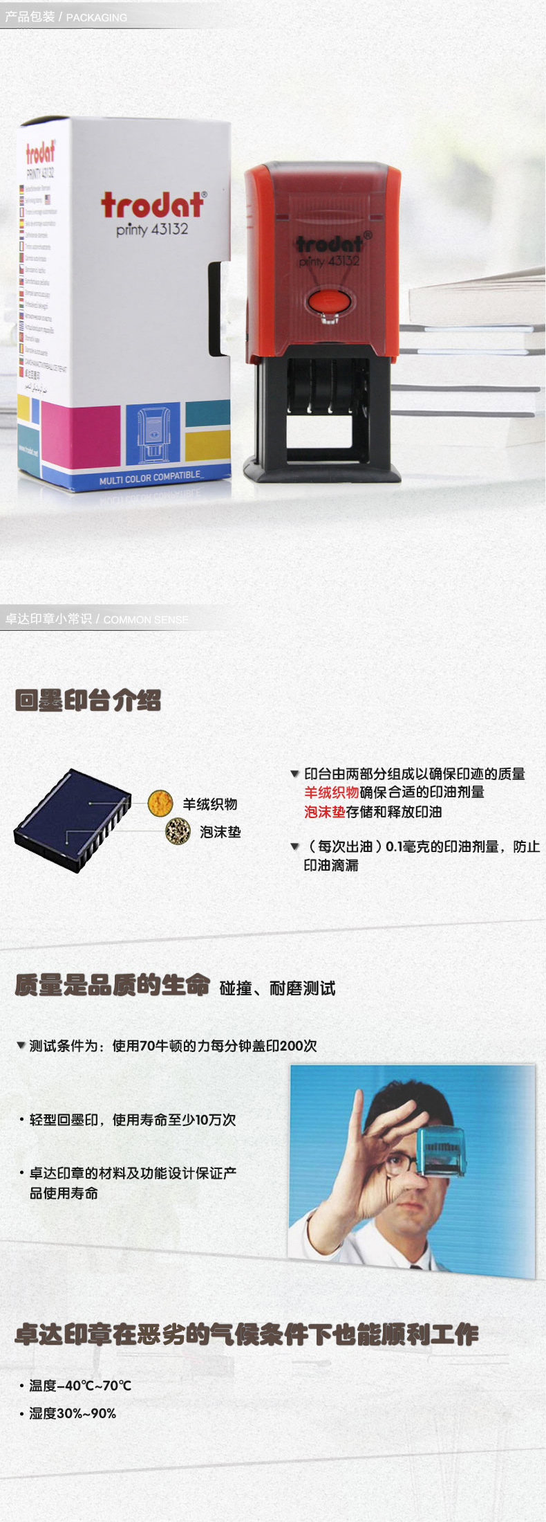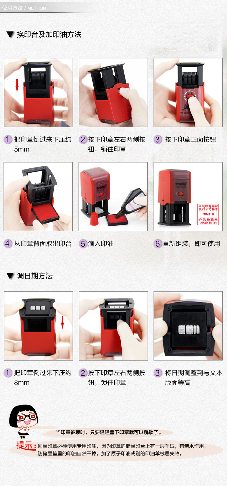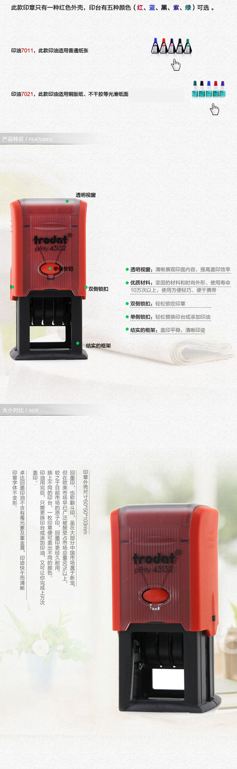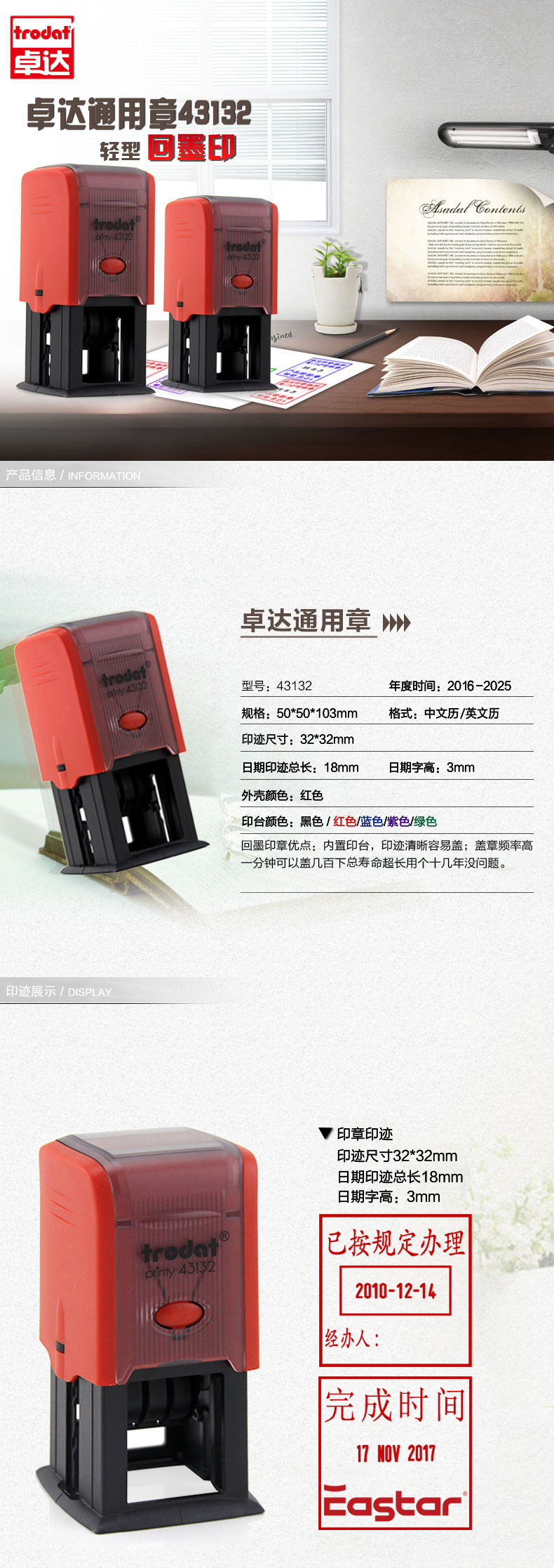 進口卓達輕型回墨印章43132翻斗印文本日期自動上墨