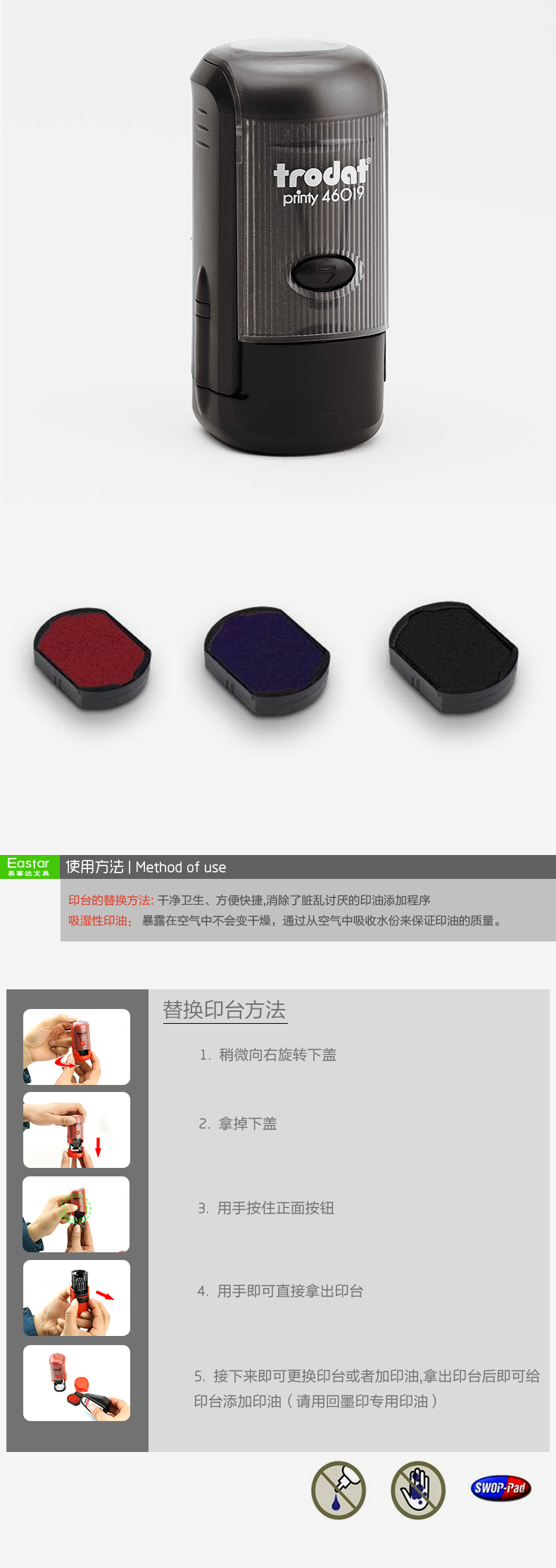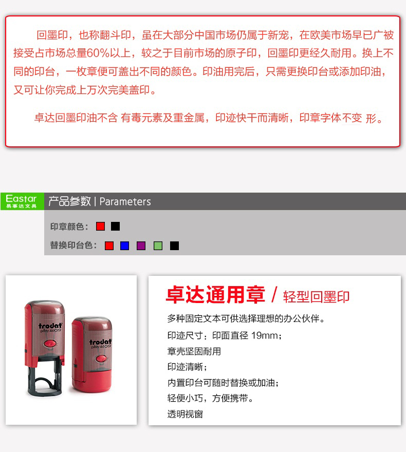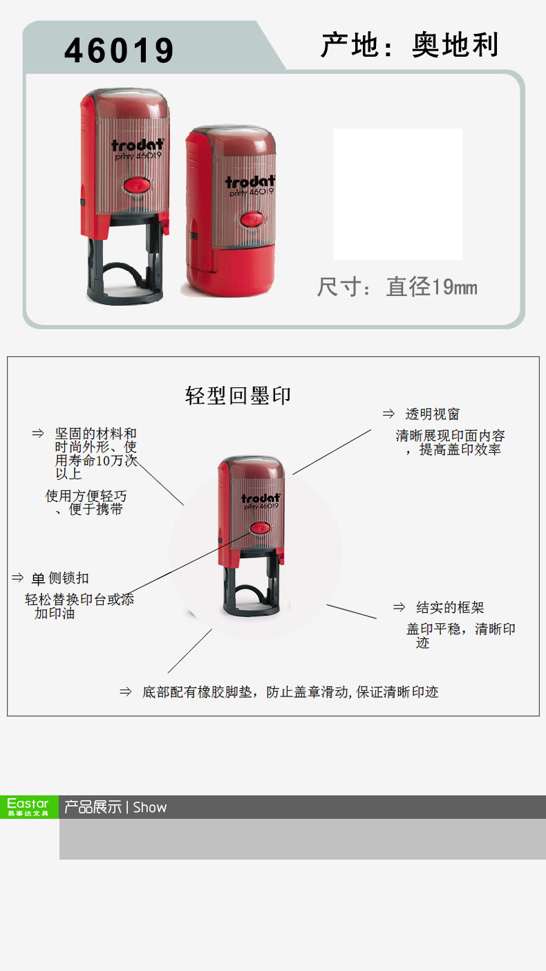 進口卓達46019輕型回墨印章翻斗文本章內置印臺自動出油章 19mm