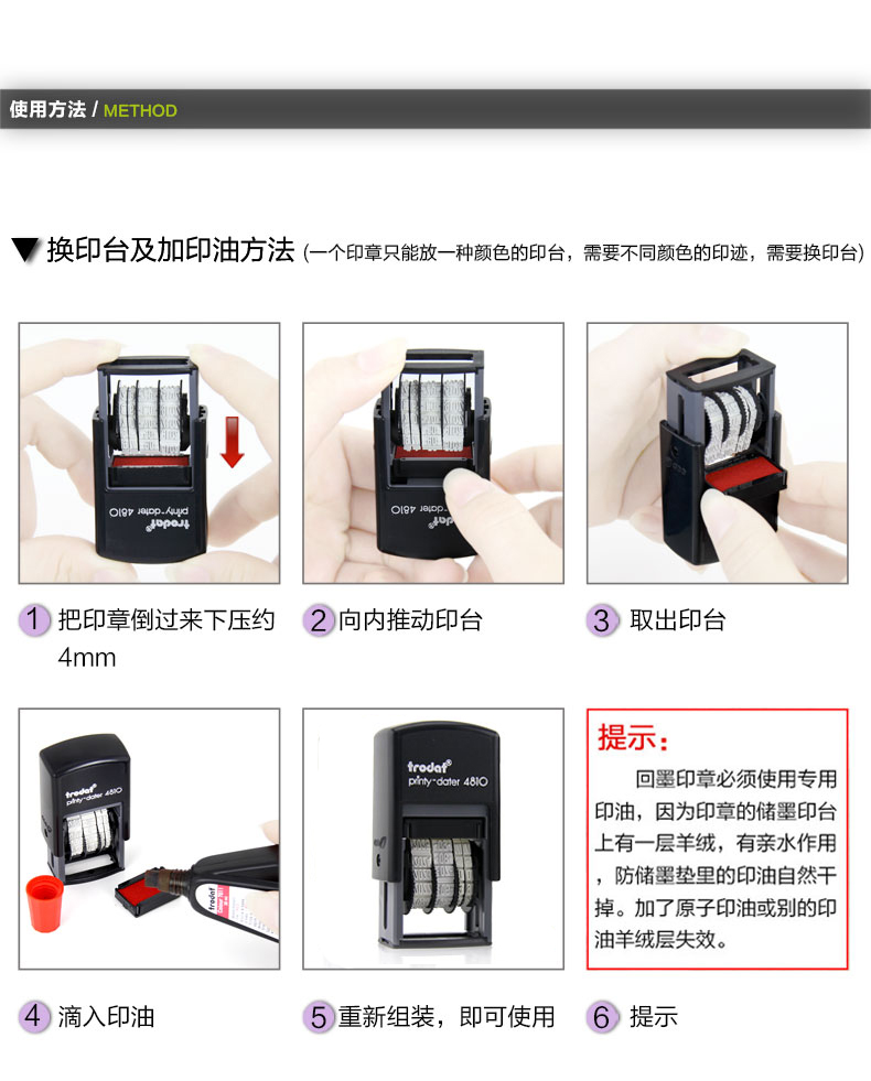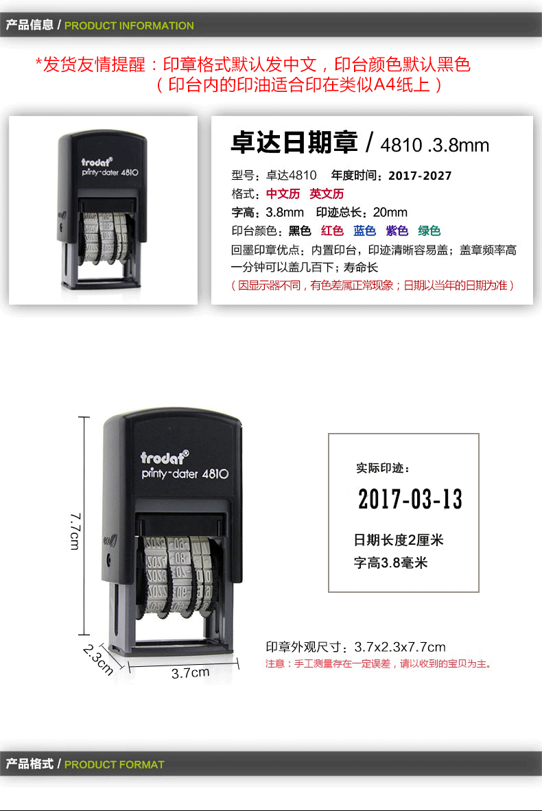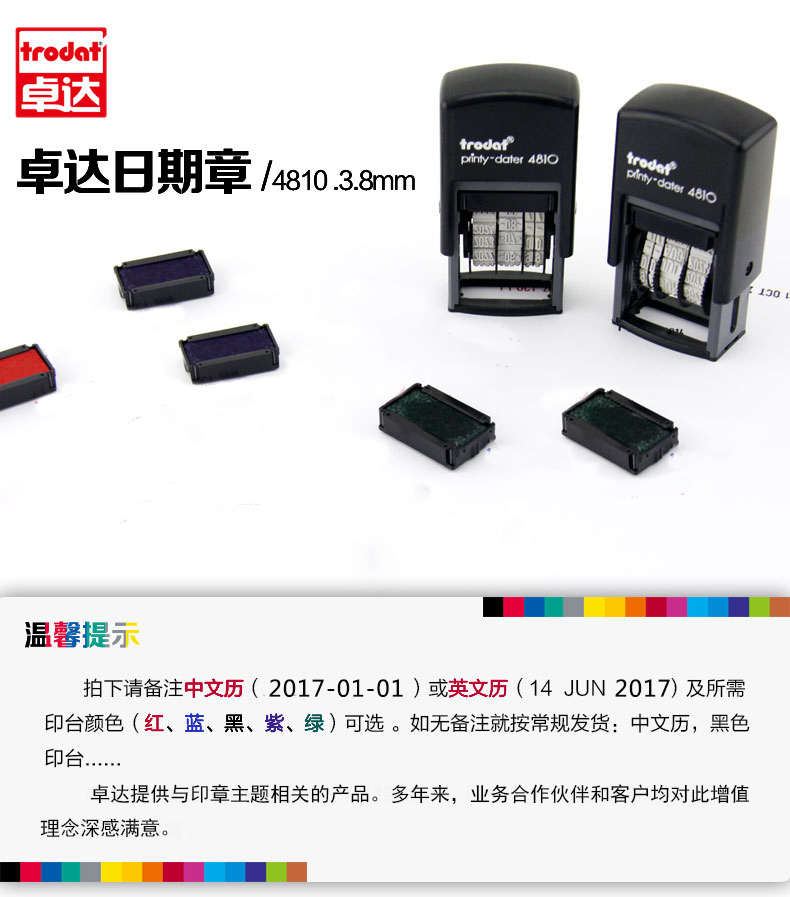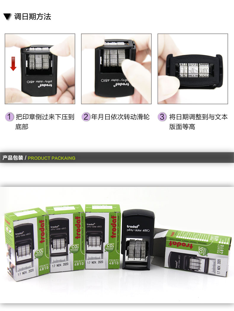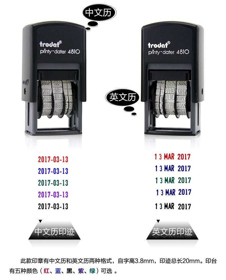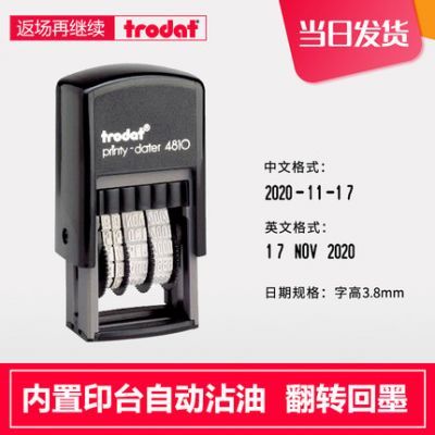 進口卓達4810回墨印章日期印章自帶印臺翻轉印章可調日期中英文