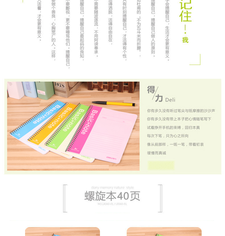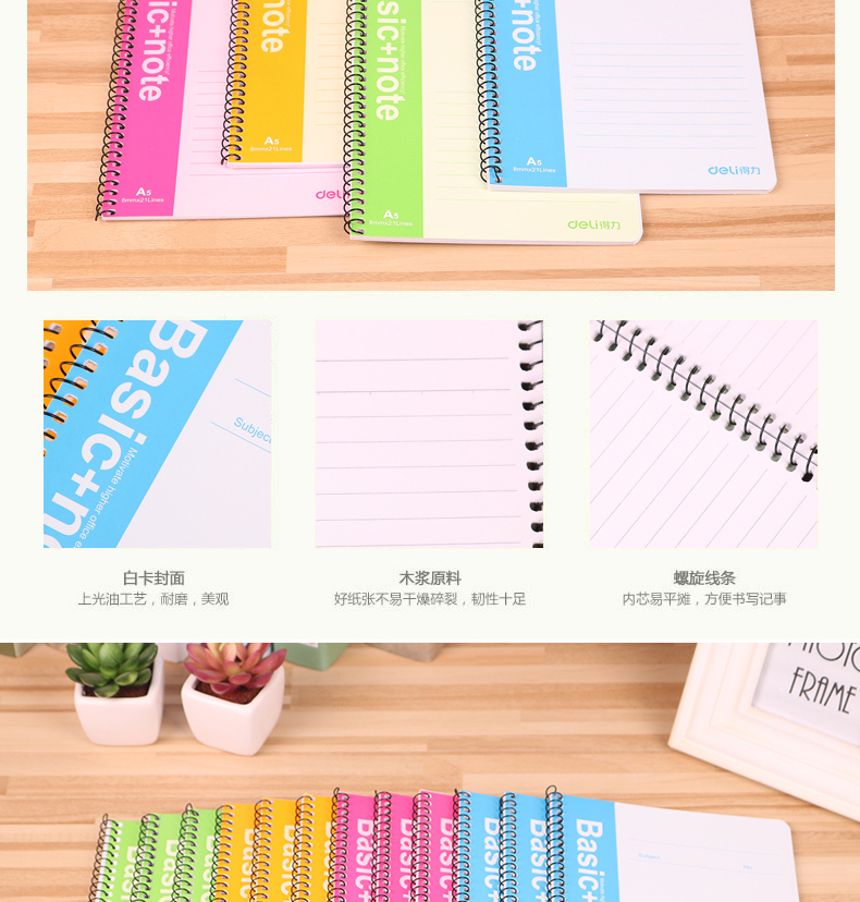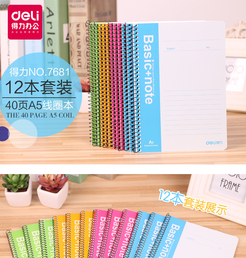 得力 7681 A5筆記本 螺旋裝訂本 記事本 線圈本 辦公本子 7683 7684 7685 螺旋本