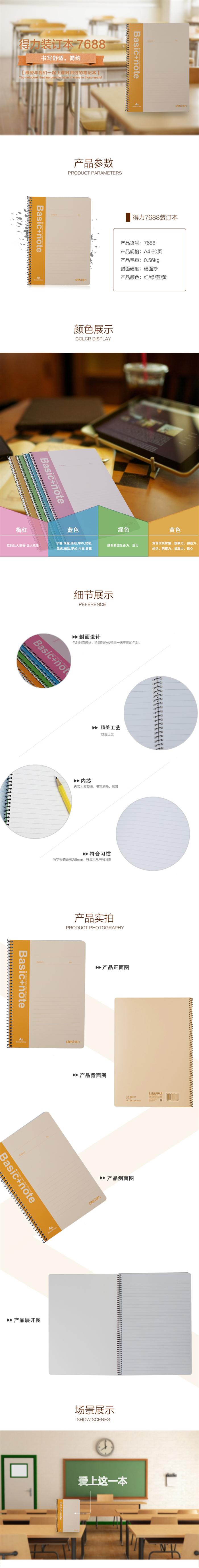 得力 7688 A4筆記本 螺旋裝訂本 60頁記事本 線圈本 辦公本子 螺旋本