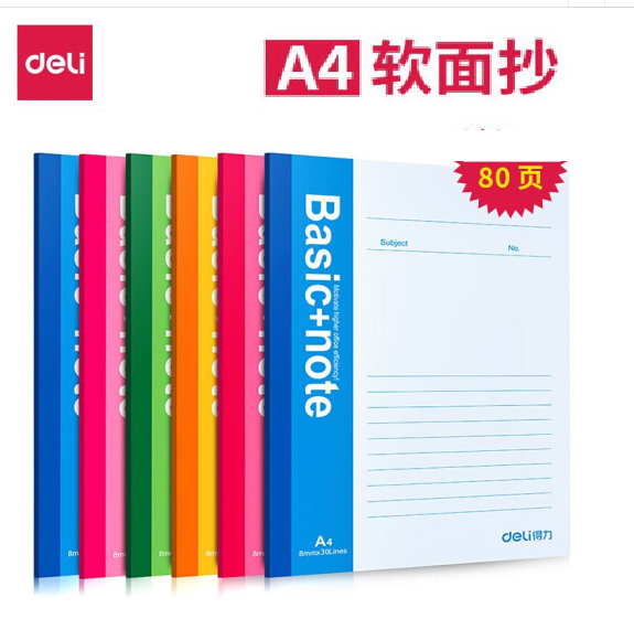 得力A4 7659軟抄本 筆記本 A4辦公記事本 80頁筆記本無線裝訂軟面抄 7660 7658