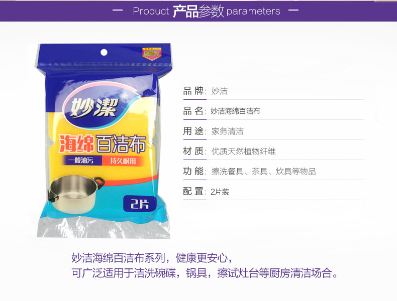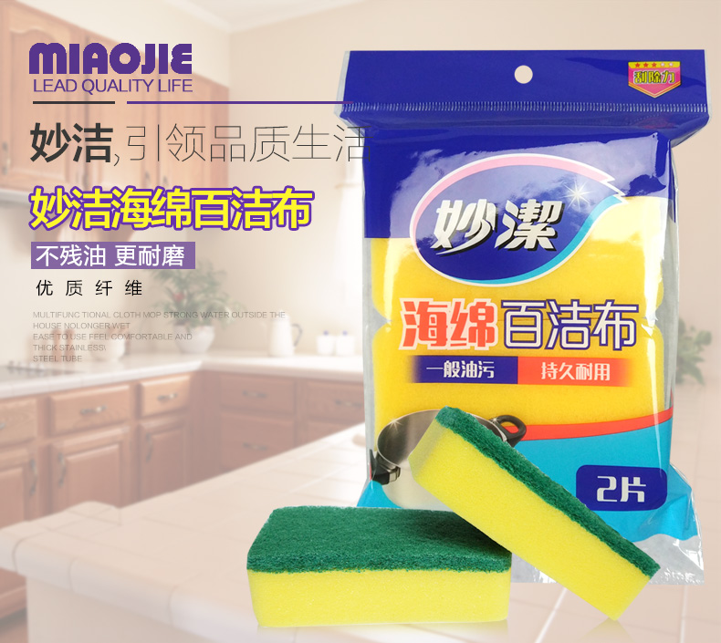 妙潔海綿百潔2塊裝 布去油多功能廚房家用洗碗布不沾油海綿擦 MHS2 百潔布