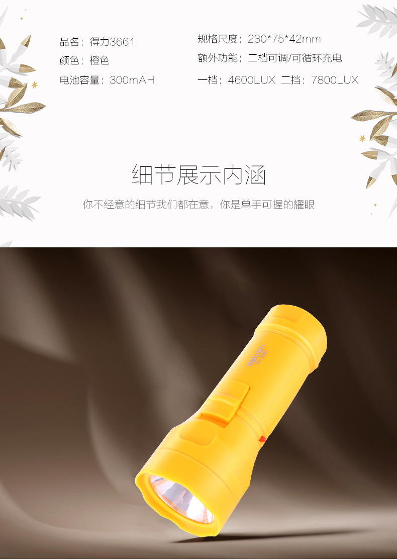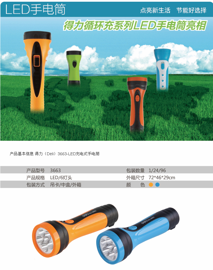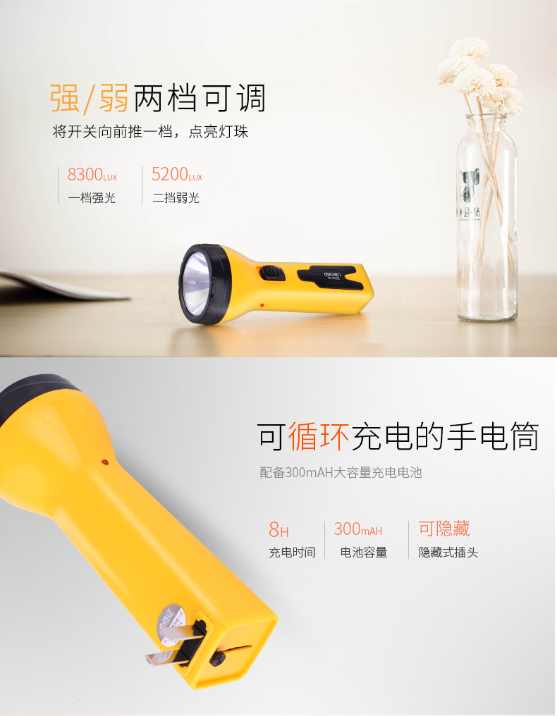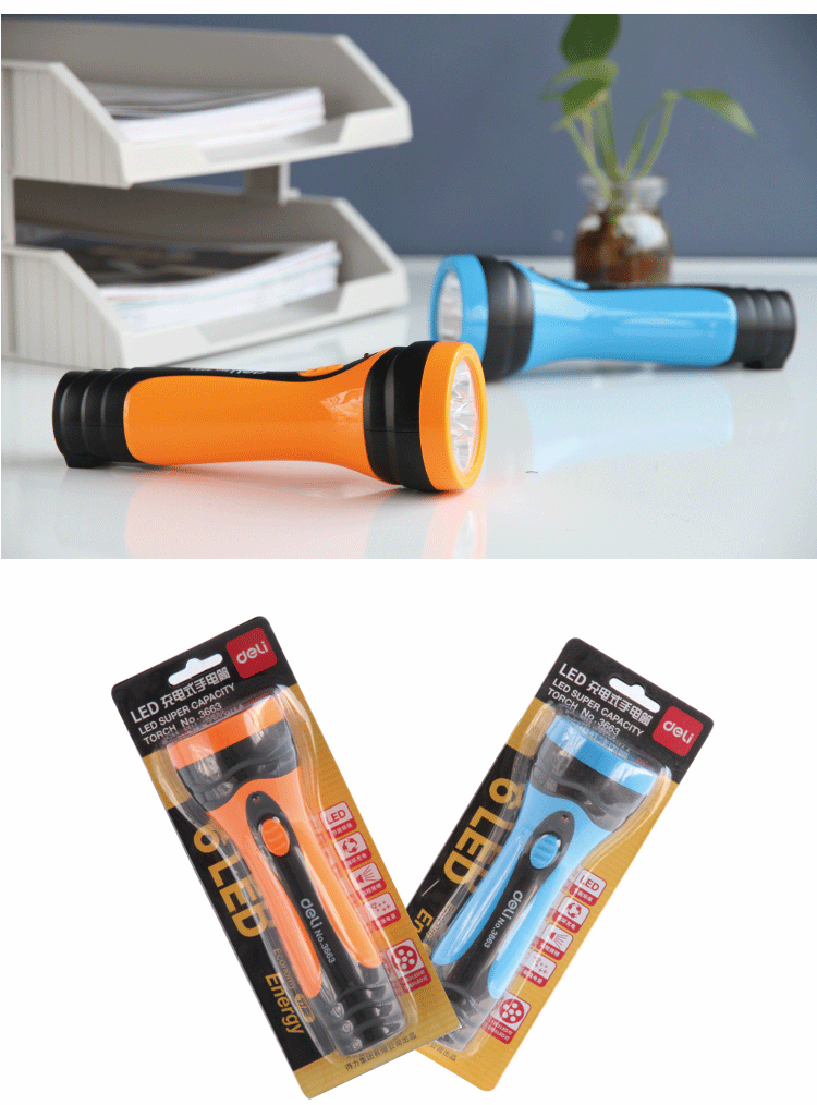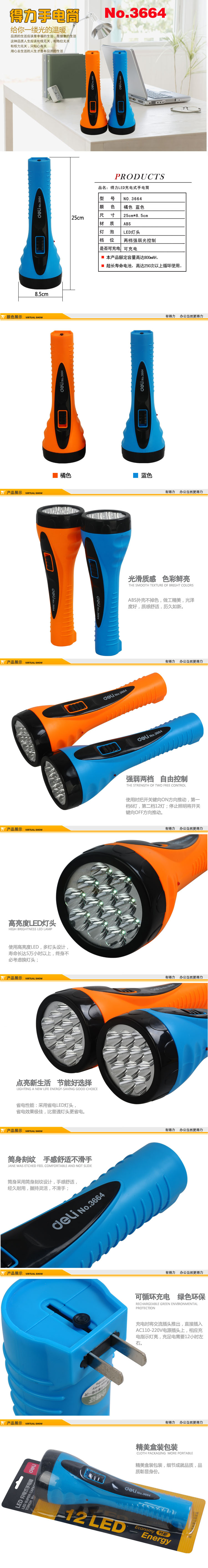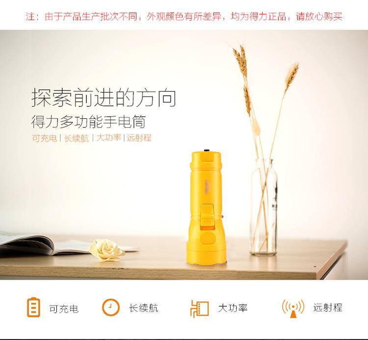 得力3661/3662/3663/3664 LED充電式手電筒循環充電大功率強光迷你便攜