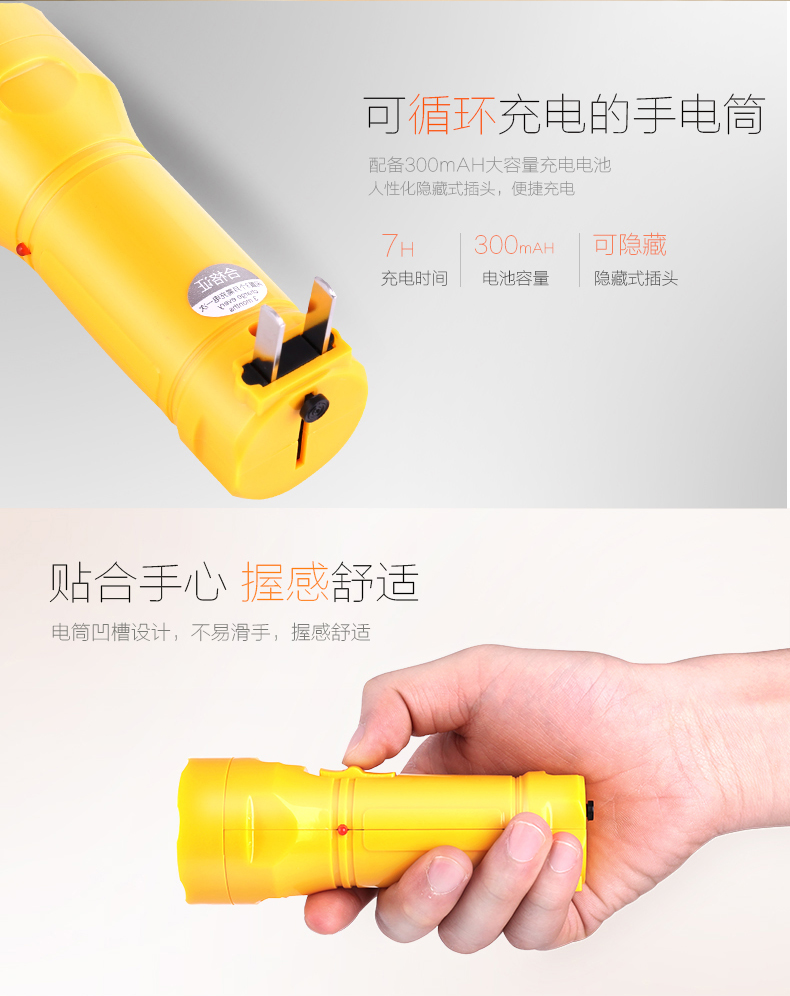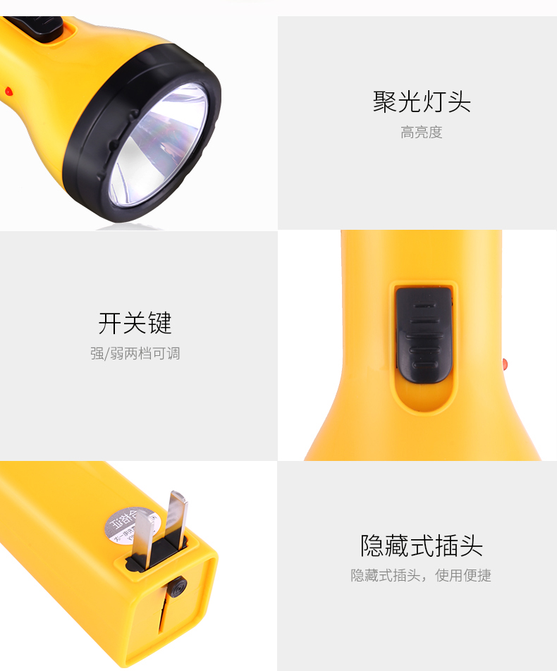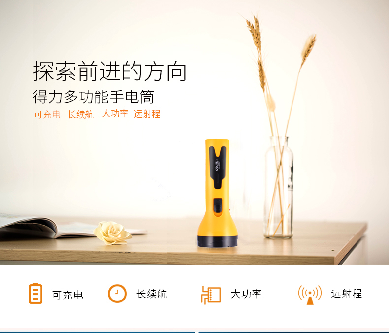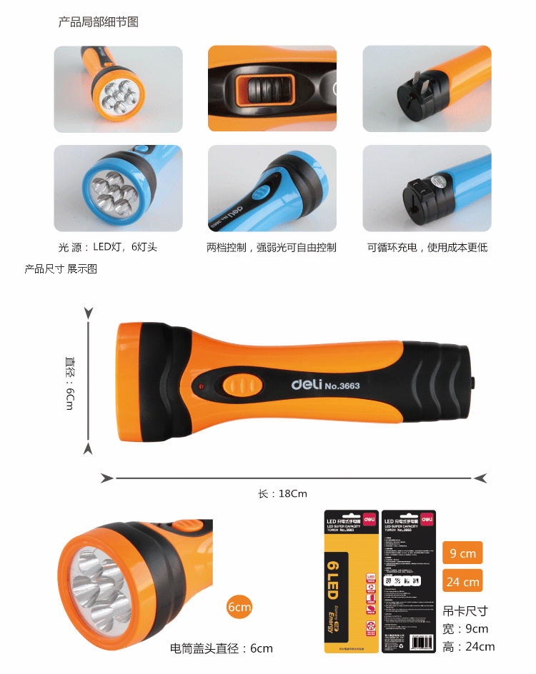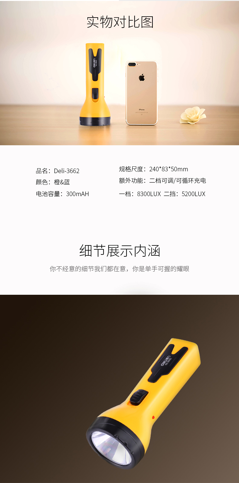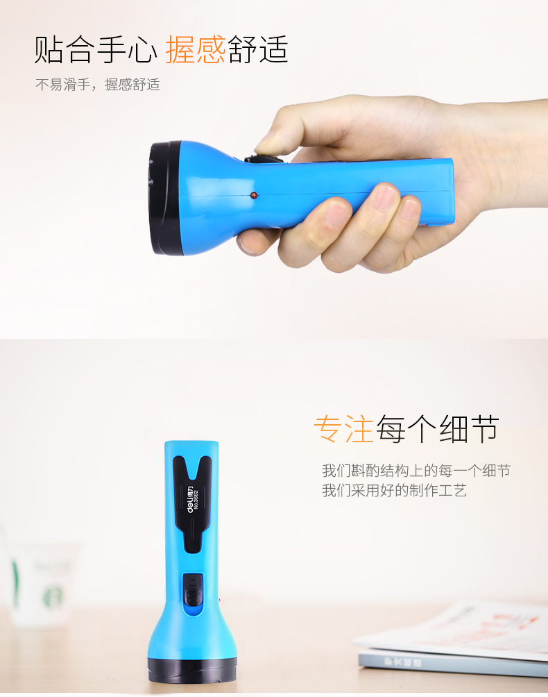 得力3661/3662/3663/3664 LED充電式手電筒循環充電大功率強光迷你便攜
