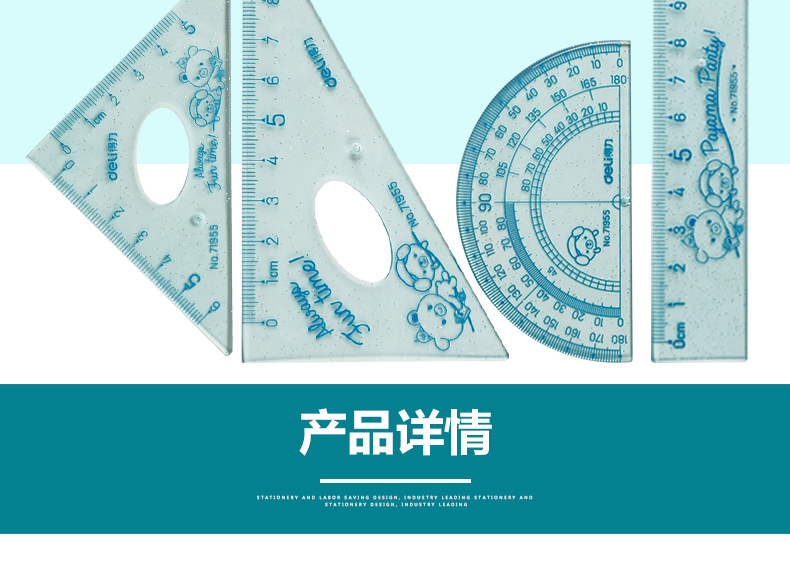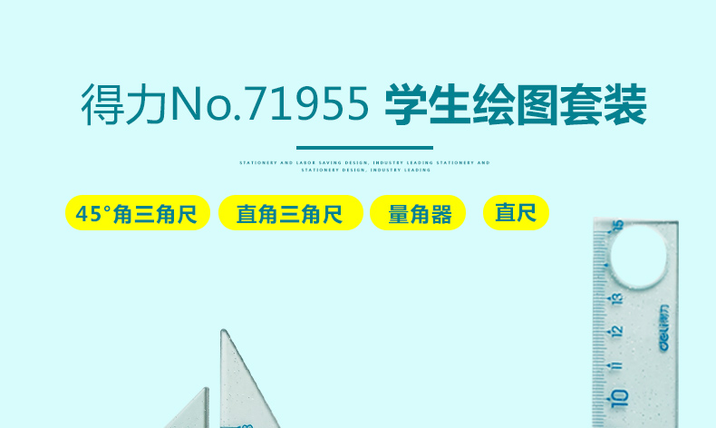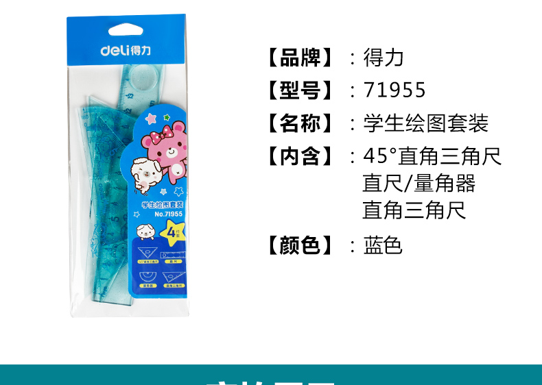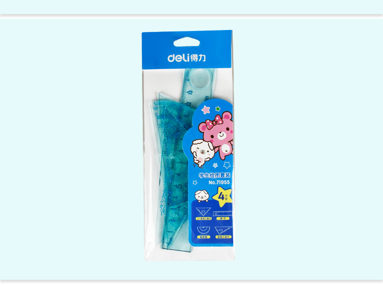 得力71955學生繪圖多功能組合 直尺+三角尺+量角器 學生4件套 開學
