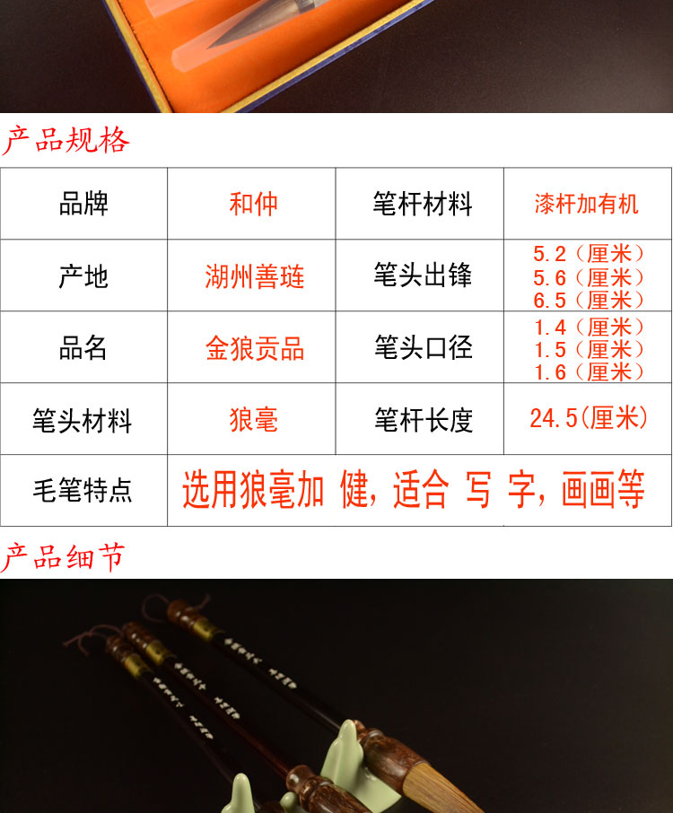金狼貢品 加健狼毫 漆桿加有機斗 適合寫字畫畫