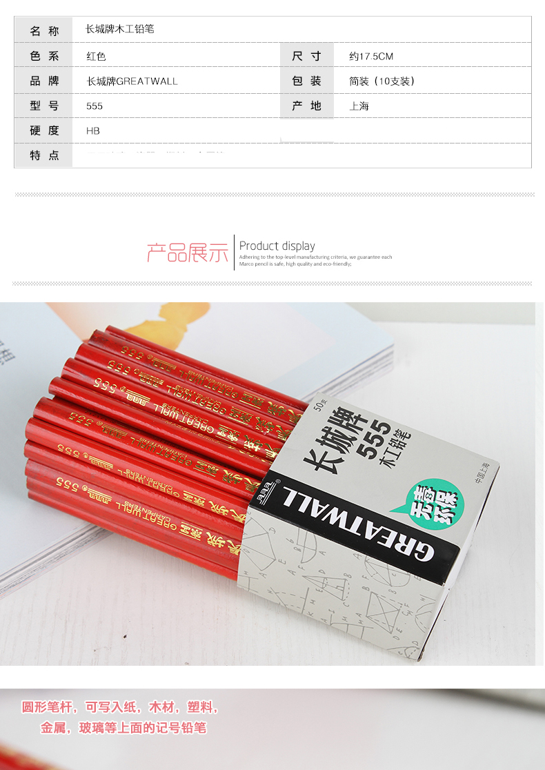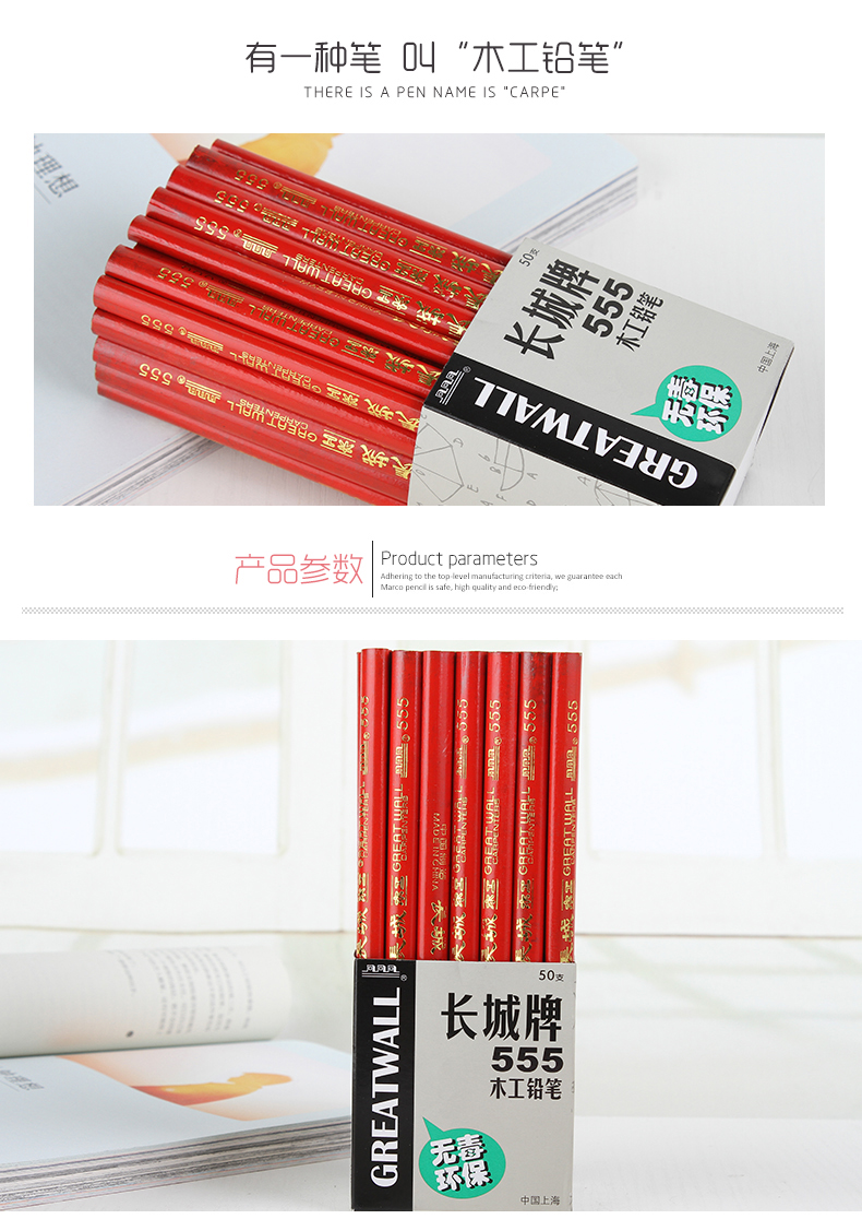 正宗上海長城牌555木工鉛筆 工程鉛筆 木工筆 寬扁鉛筆