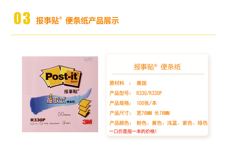 3M報事貼R330彩色抽取式便利貼底座可再貼便條紙便簽紙本