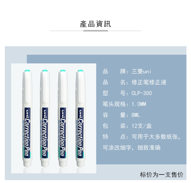 日本uni三菱CLP300高光筆 鋼頭修正筆/修正液/涂改液CLP-300