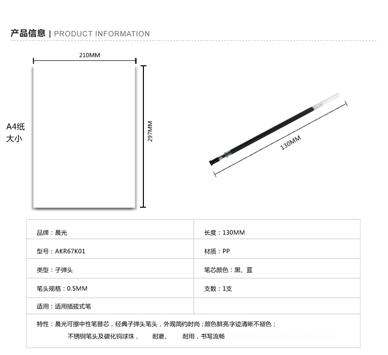 晨光文具熱學生可擦水筆芯AKR67K01可擦筆筆芯中性筆替芯黑藍0.5 開學