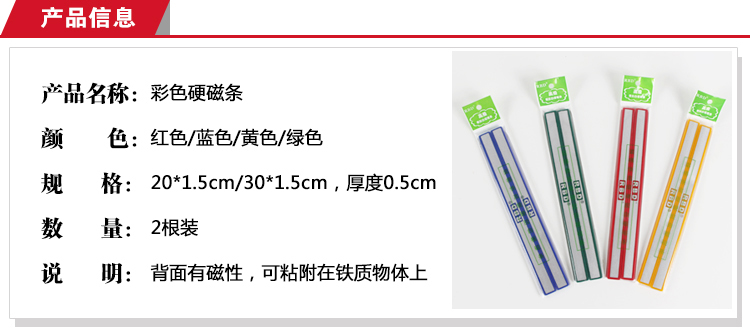 2根裝 裝得快20cm/30cm彩色硬磁條白板磁鐵吸鐵石條狀磁貼